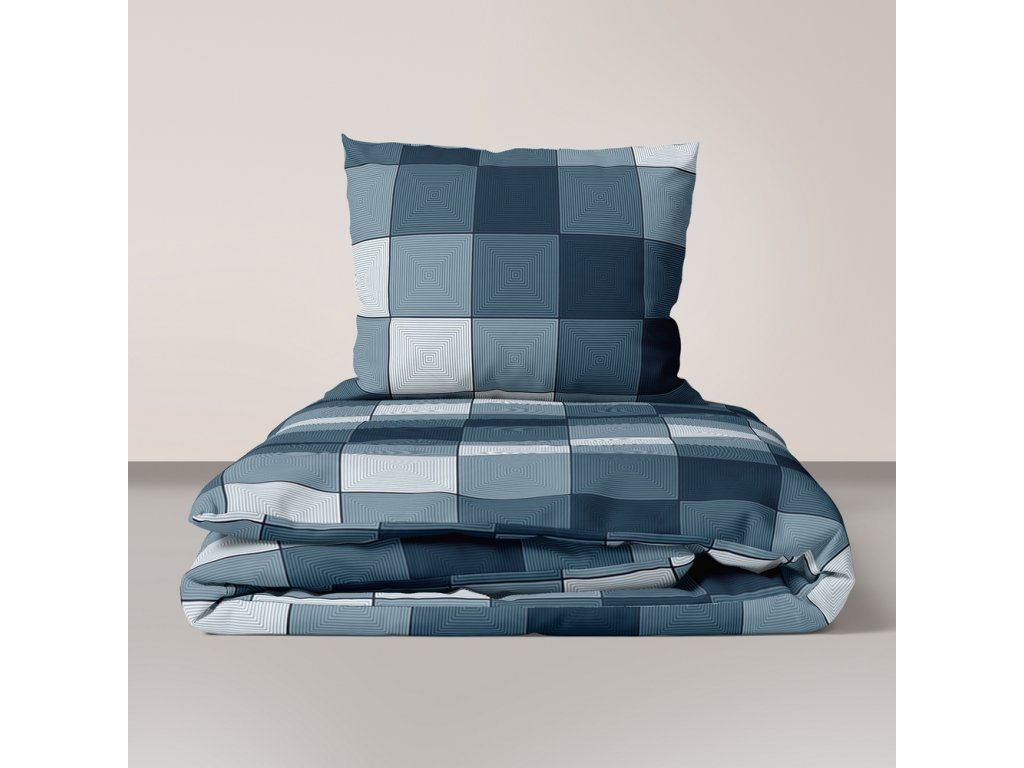 Krepové obliečky 160x200 +2ks 70x80 GOLD Káro 3D námornícka modrá
