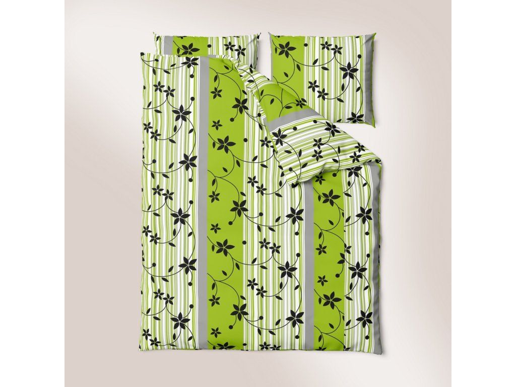 Krepové obliečky 160x200 +2x70x80 Bavlnené Bielawa - Popínavá rastlina zelená