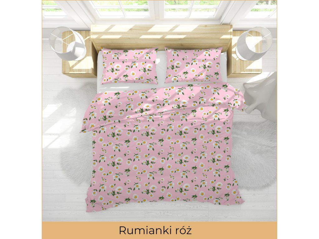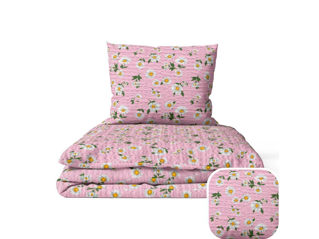 Krepové obliečky 160x200 + 2x70x80 Bavlnené Bielawa - Rumančeky ružové
