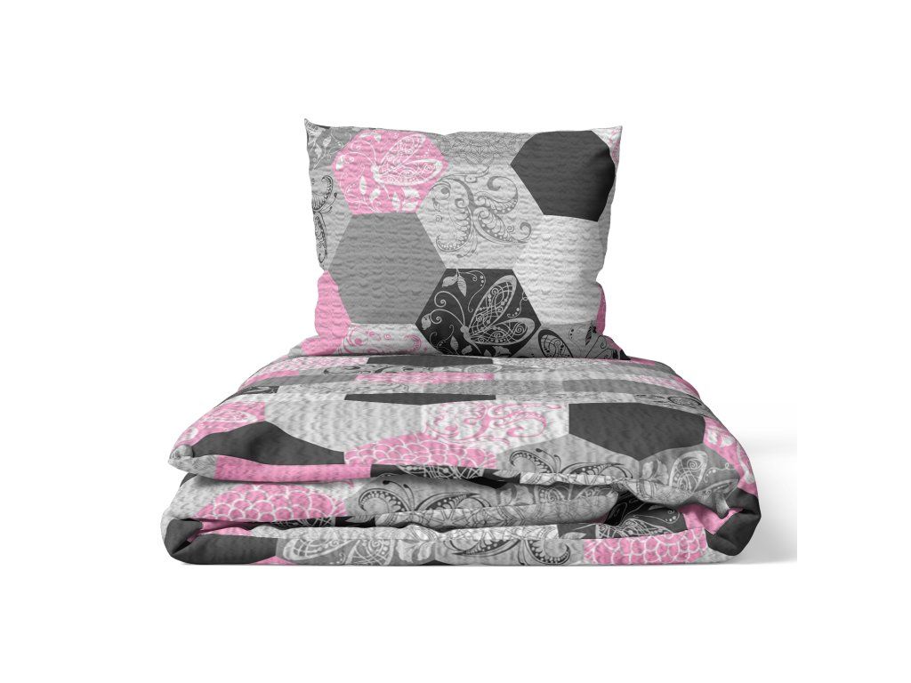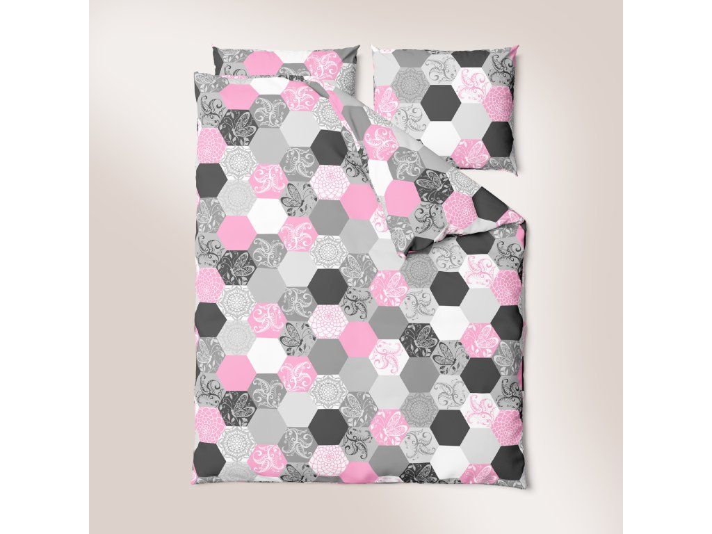 Krepové obliečky 160x200 + obliečka 70x80 hrubá bavlna - Medové plásty ružové