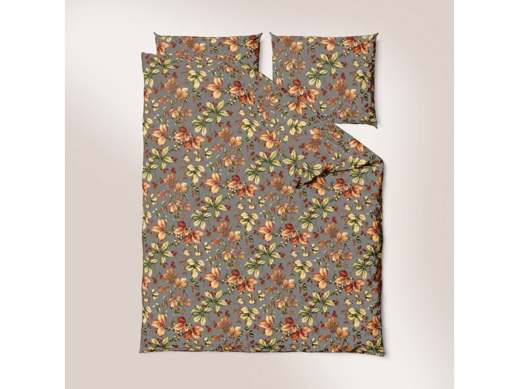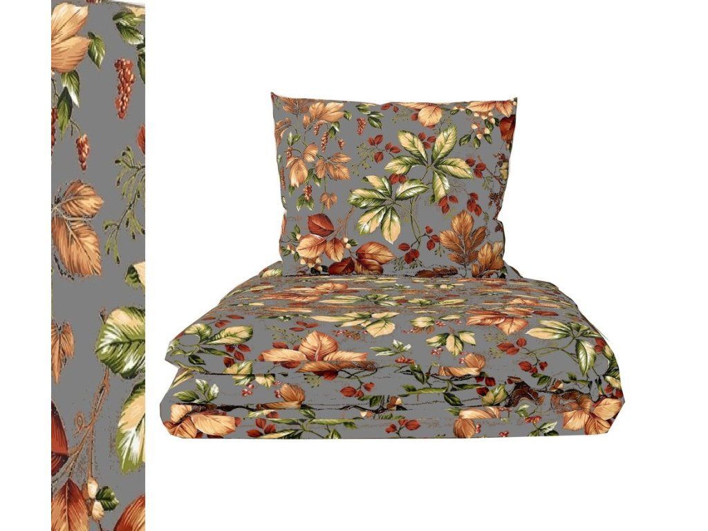 KREPOVÉ OBLIEČKY 160x200 + OBLIEČKA NA VANKÚŠ 70x80 HRUBÁ BAVLNA - Jesenný vánok na tmavobéžovom pozadí