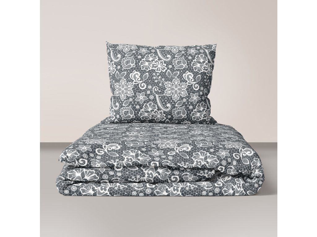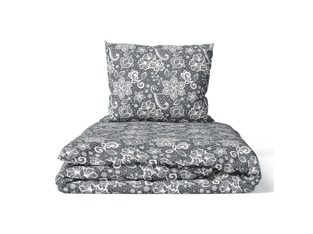 KREPOVÉ OBLIEČKY 160x200cm + 2x70x80cm VZORY BIELAWA - ČIPKA NA SIVOM