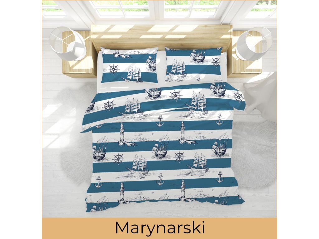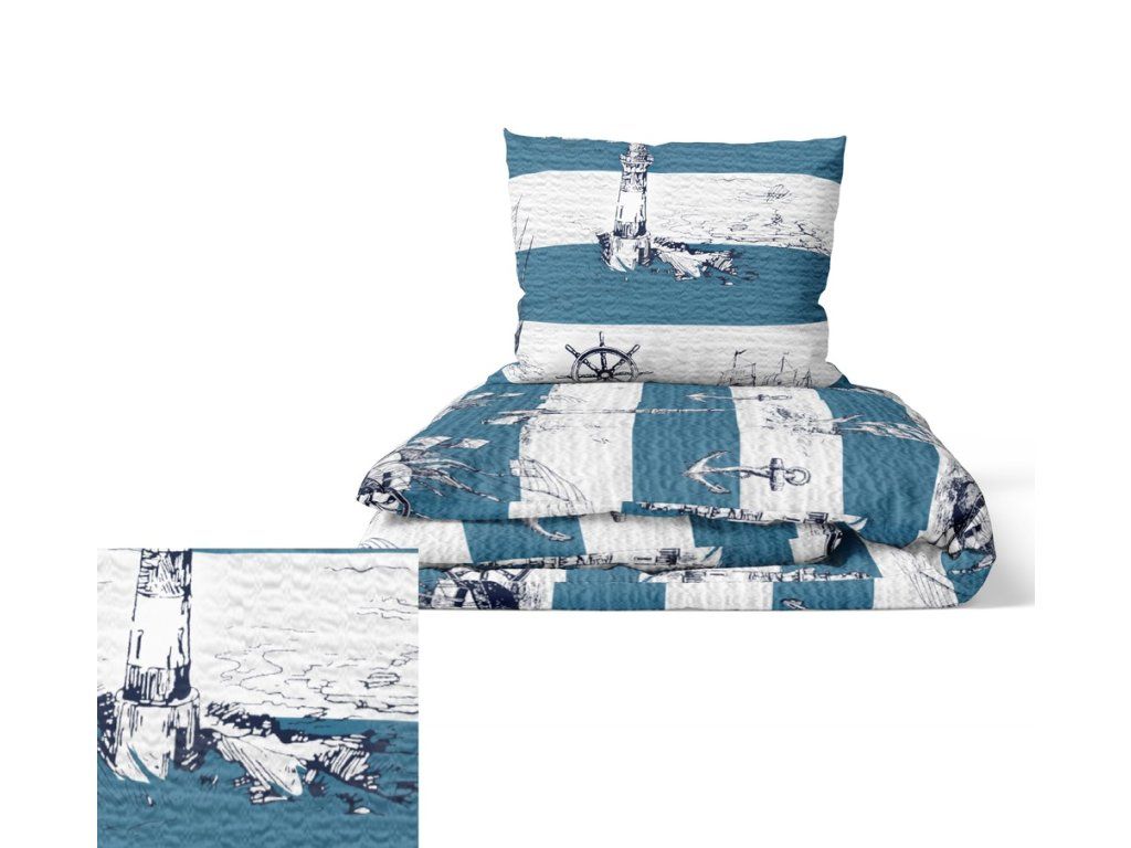 KREPOVÉ OBLIEČKY 160x200cm + 2x70x80cm VZORY BIELAWA- NÁMORNÍCKY