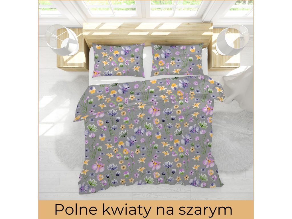 KREPOVÉ OBLIEČKY 160x200cm + 2x70x80cm VZORY BIELAWA- POĽNÉ SIVÉ
