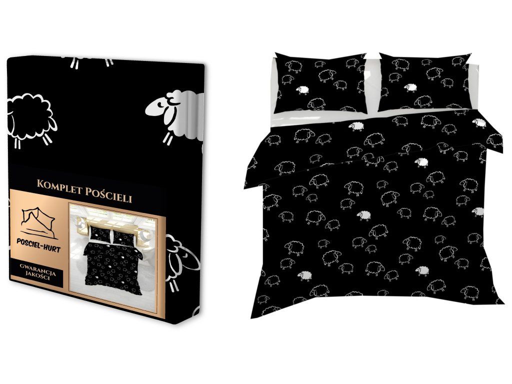 Krepové obliečky 220x200 + 2 obliečky PREMIUM 100% bavlna: Čierne barančeky