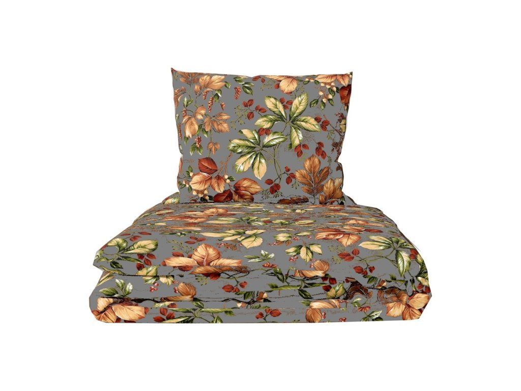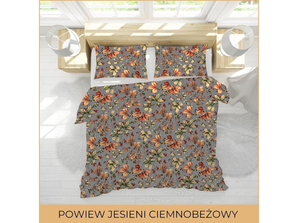 Krepové obliečky 220x200 + 2 obliečky PREMIUM 100% bavlna: Jesenný vánok na tmavobéžovom