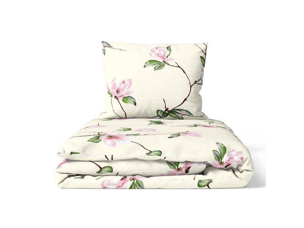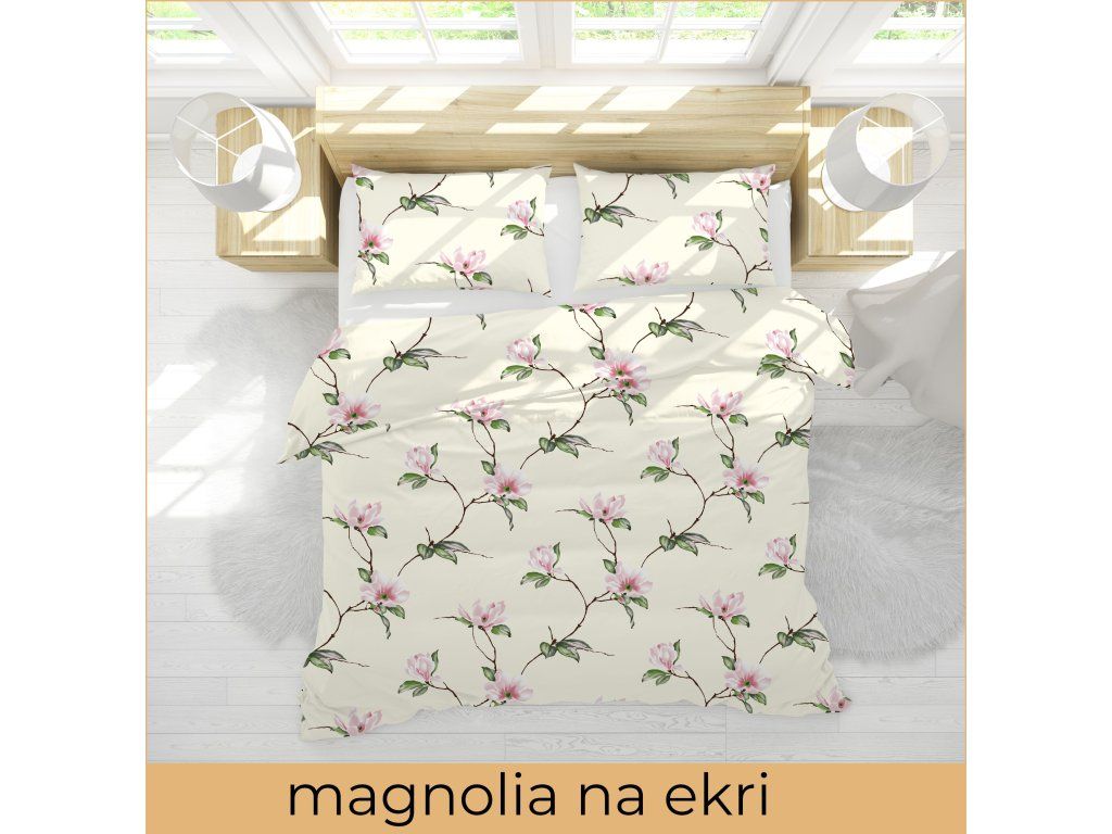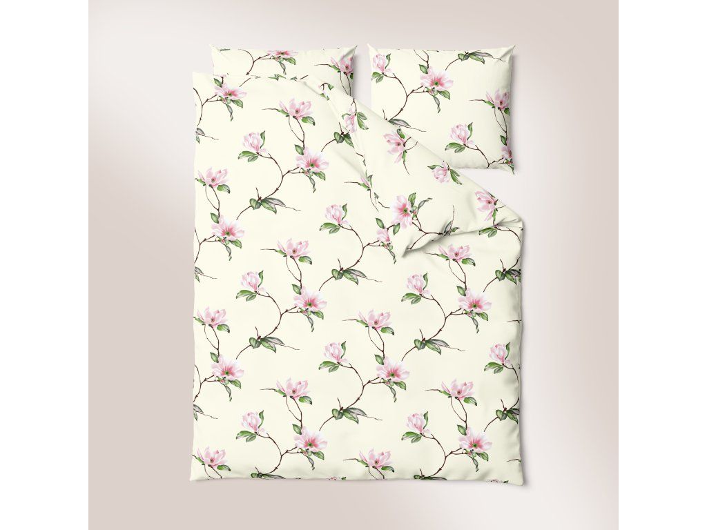 Krepové obliečky 220x200 + 2 obliečky PREMIUM 100% bavlna: magnólia na ecru