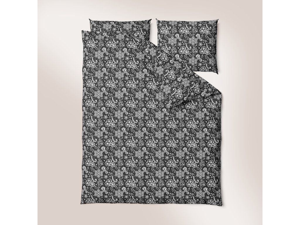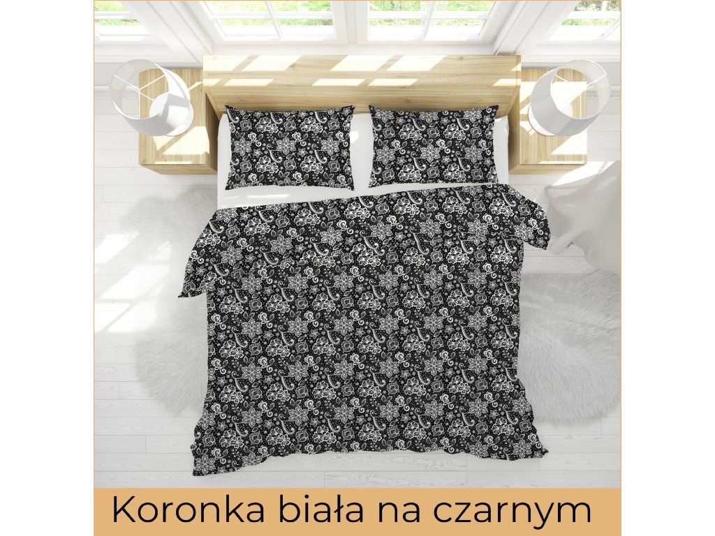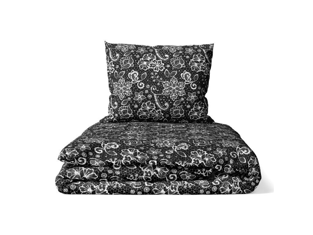 Súprava krepovej posteľnej bielizne 220x200 cm – Vzor: biela čipka na čiernom pozadí