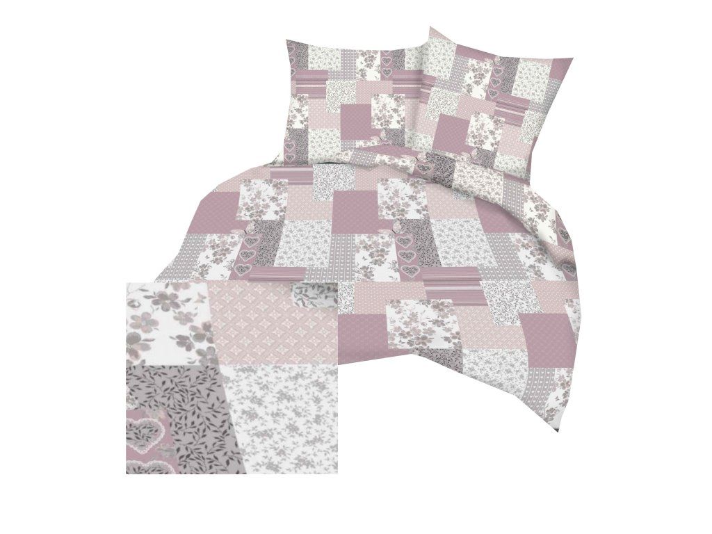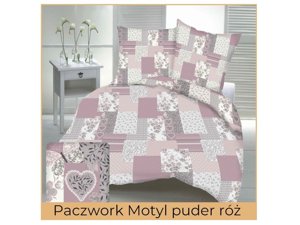 Kreppová posteľná bielizeň 160x200 + 1x70x80 SÚPRAVA PREMIUM : Patchwork Motýľ púdrová ružová
