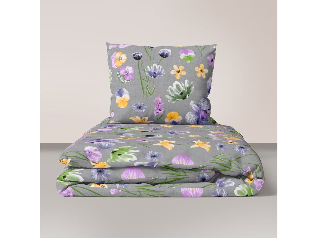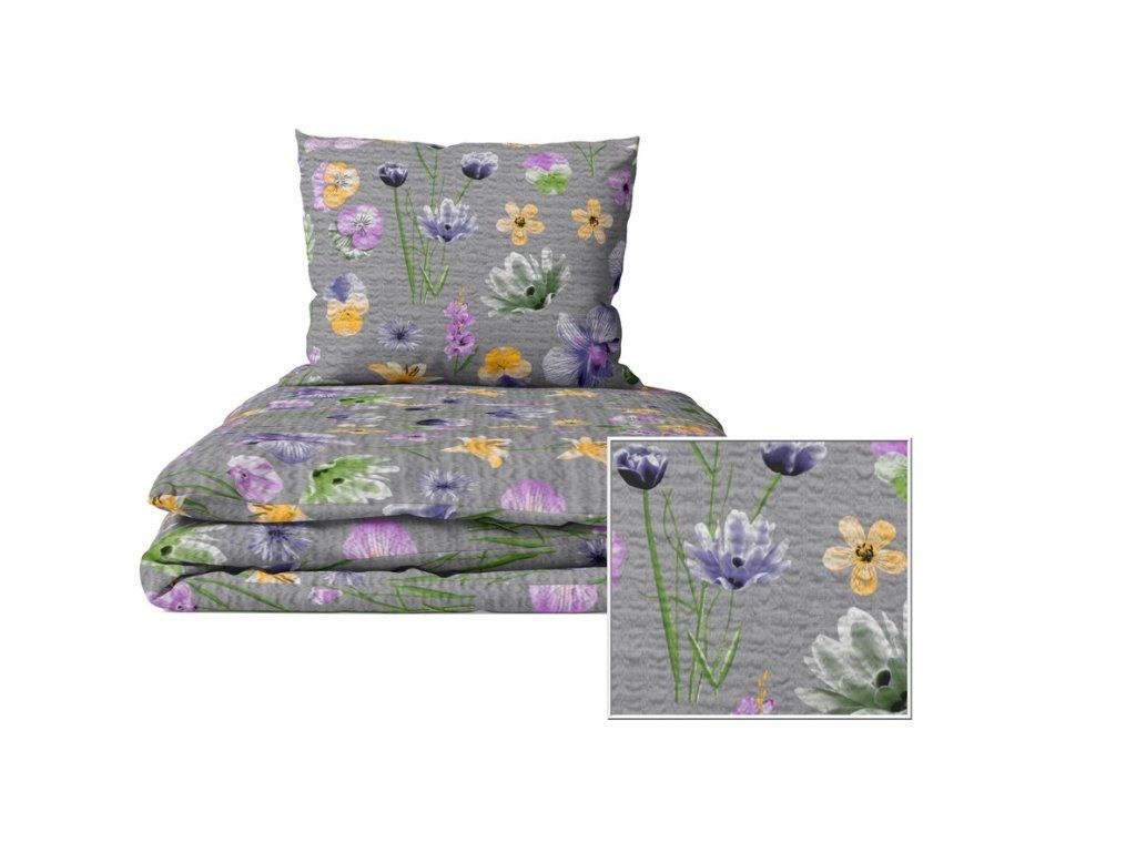 Kreppová posteľná bielizeň 160x200 + 1x70x80 SÚPRAVA PREMIUM : Poľné kvety na sivom
