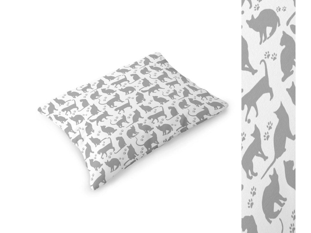 Obliečka 70x80 na vankúš 100% bavlna vzor: Sivé mačky na bielom 663