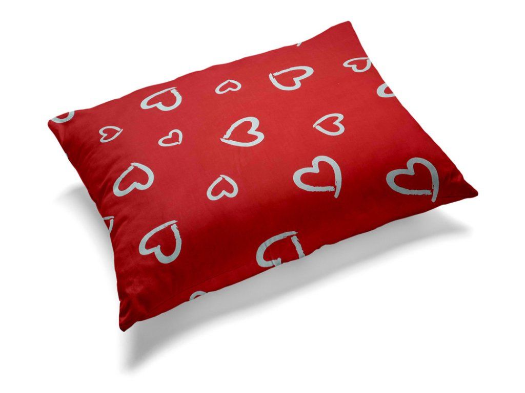 Obliečka 70x80cm na vankúš 100% bavlna - srdcia s lemom na červenom
