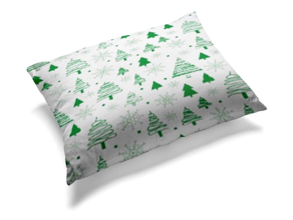 Obliečka 70x80cm na vankúš 100% bavlna - Zakrútené stromčeky na bielom zelené