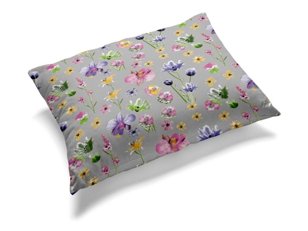 Obliečka 70x80cm na VANKÚŠ z KORY Poľné kvety sivé