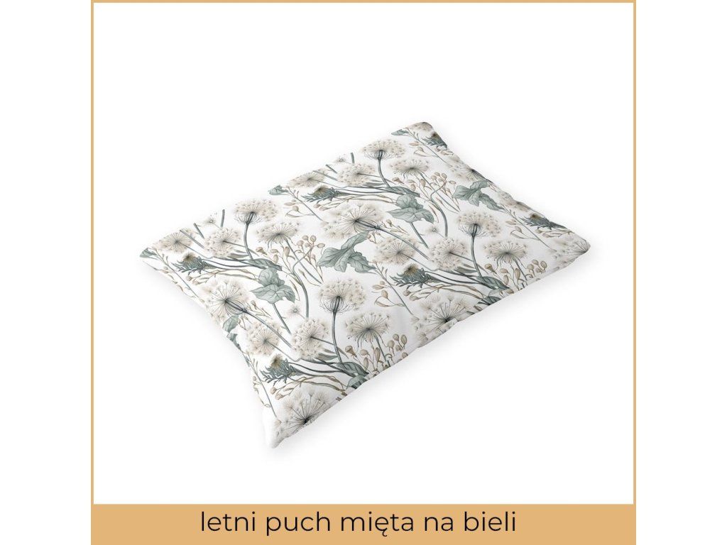 Obliečka na vankúš 70x80cm 100% bavlna vzor: letné páperie mäta na bielej