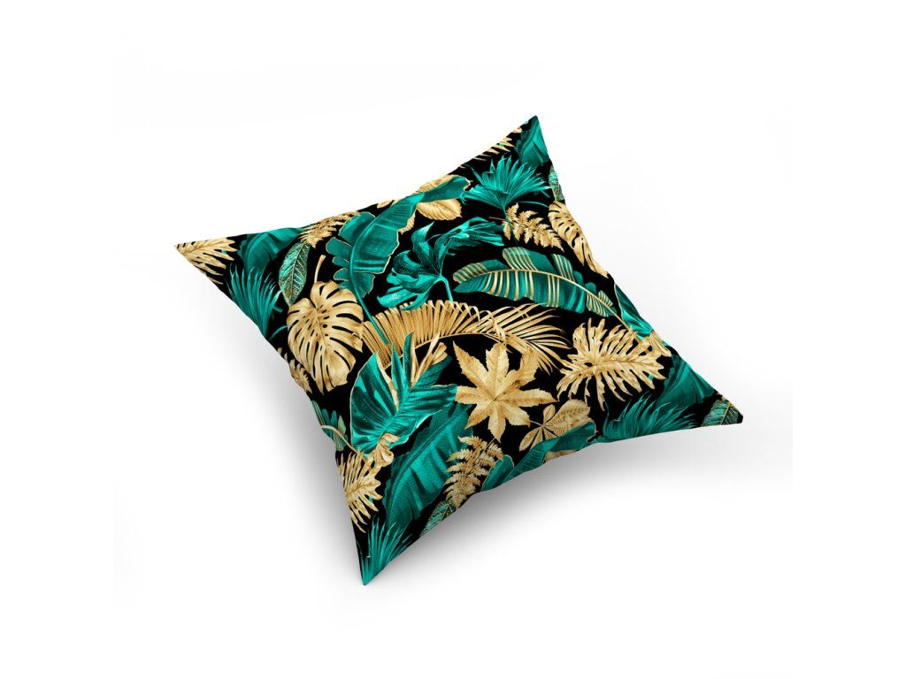 Obliečka na vankúš jasiek 40x40cm, 100% bavlna Listy 3D tyrkysové zlaté