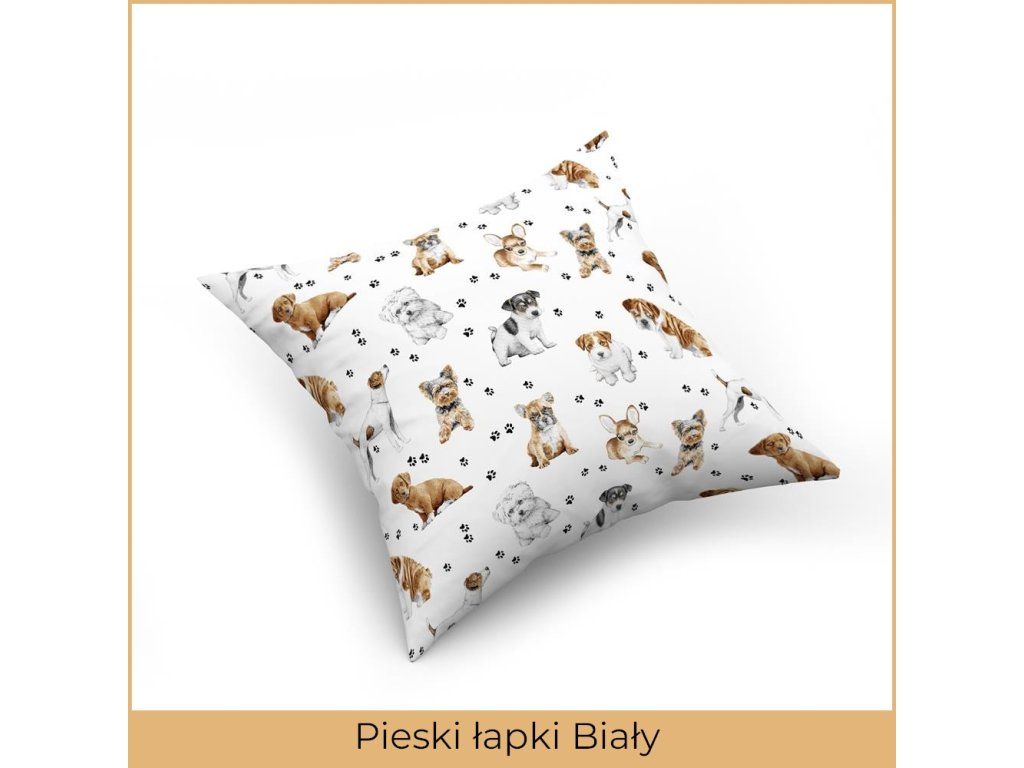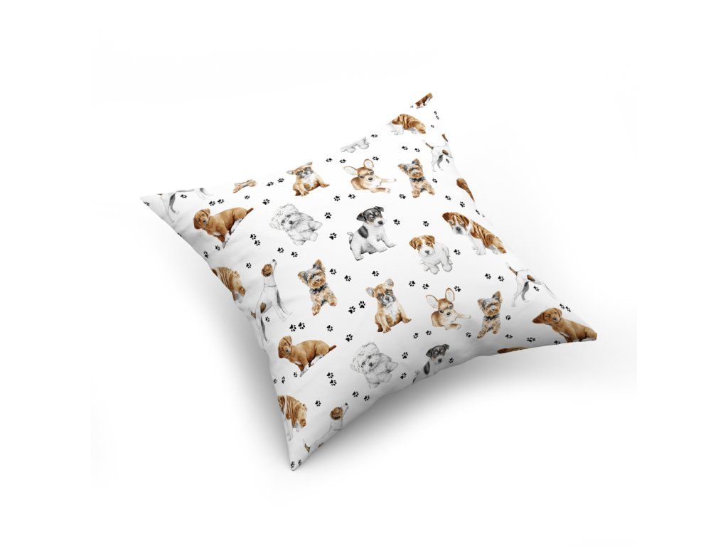 Obliečka na vankúš jasiek 40x40cm, 100% bavlna Psíky labky biely