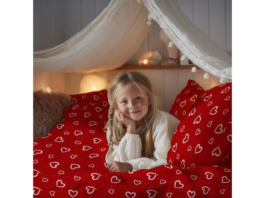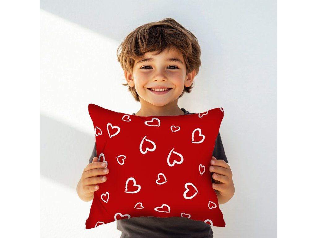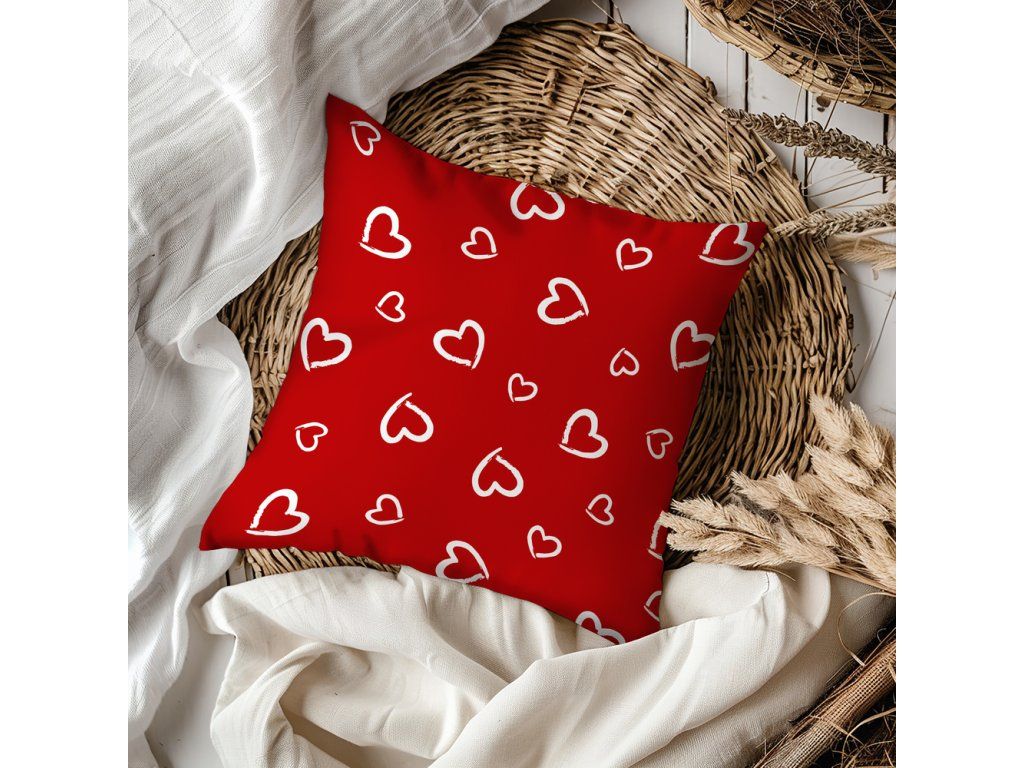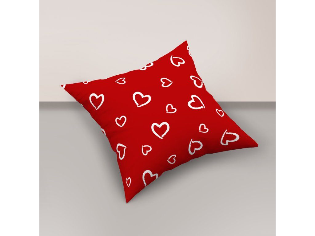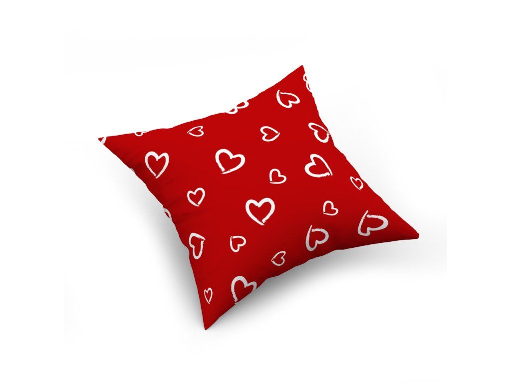 Obliečka na vankúšik 40x40 100% BAVLNA Biele srdcia s obrysom na červenom