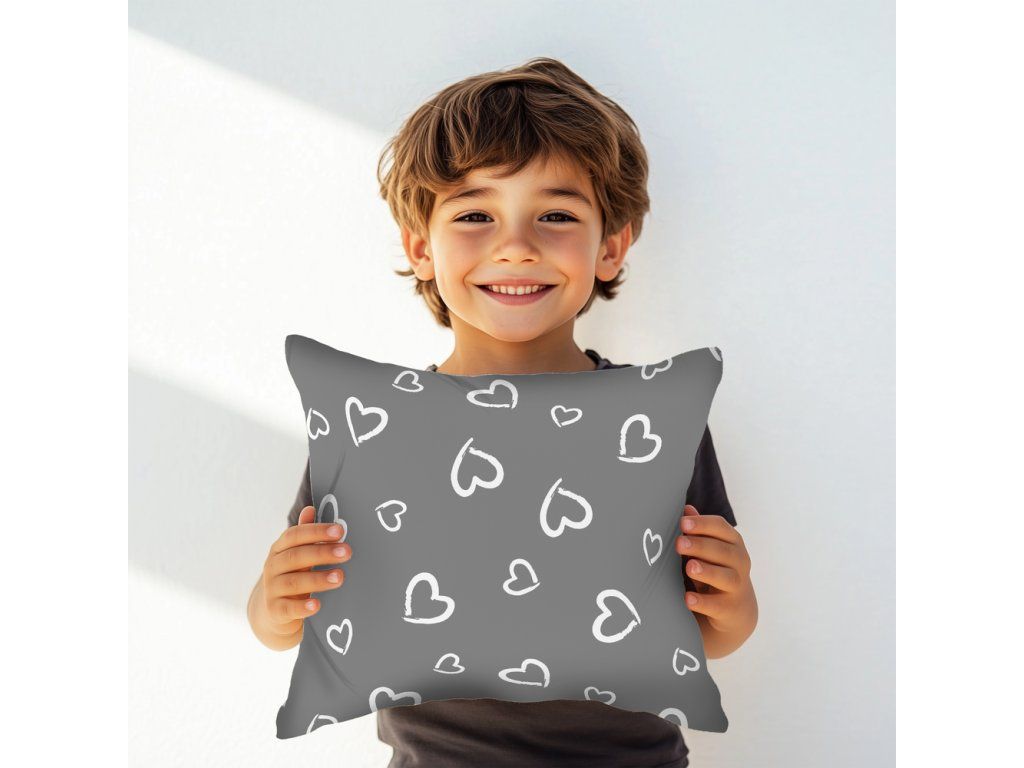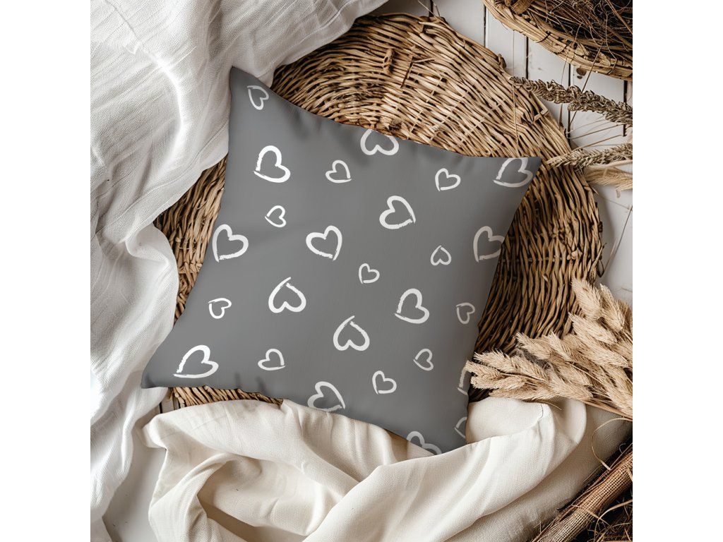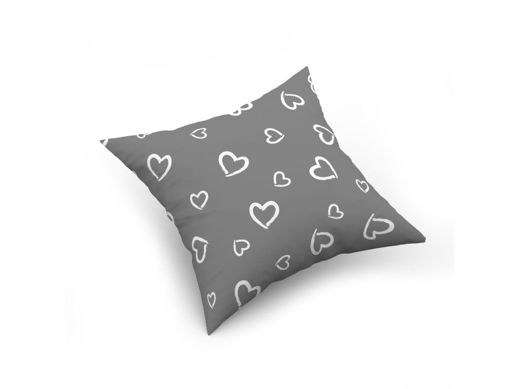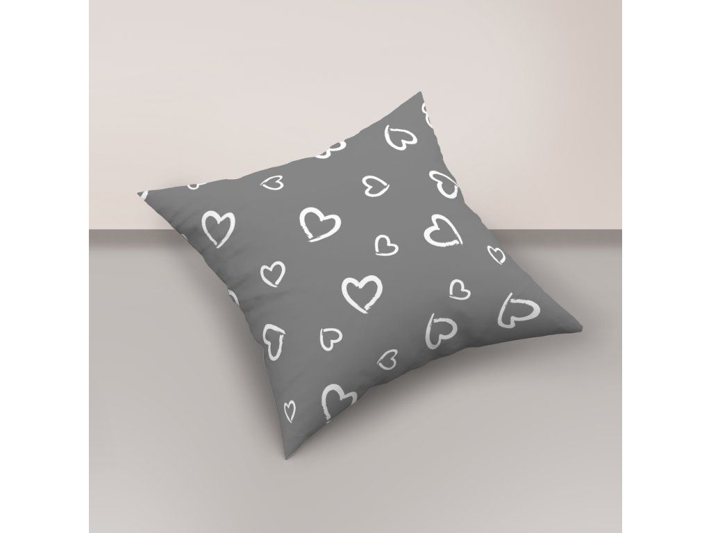 Obliečka na vankúšik 40x40 100% BAVLNA Biele srdcia s obrysom na sivom