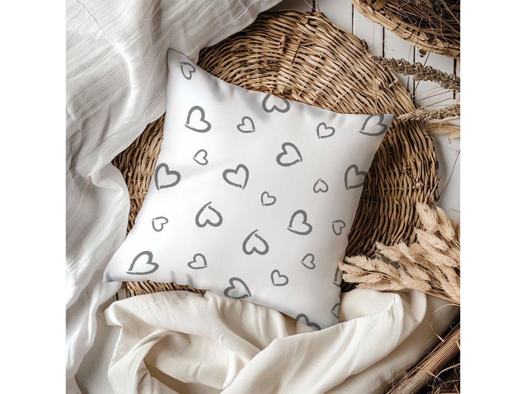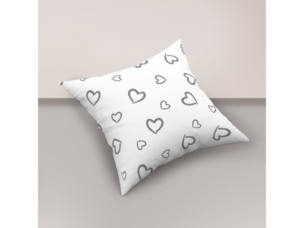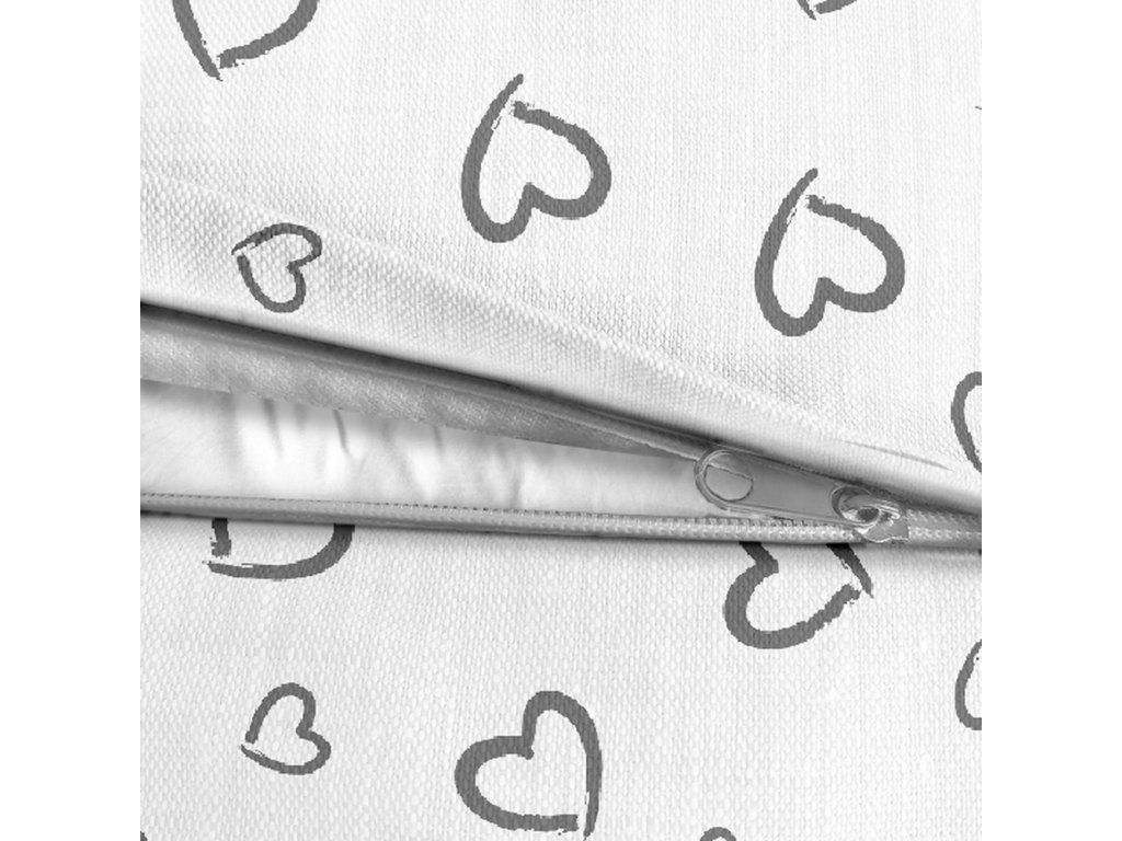 Obliečka na vankúšik 40x40 100% BAVLNA Sivé srdcia s obrysom na bielom