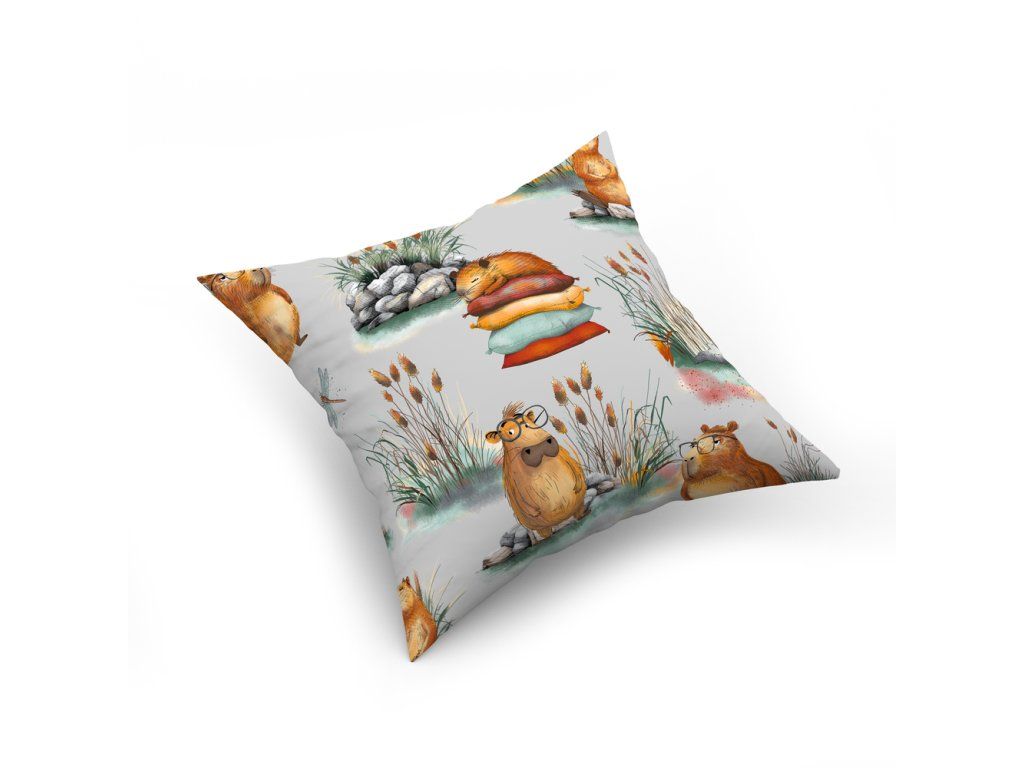 Obliečka na vankúšik 40x40cm 100% BAVLNA, Sivé kapibary