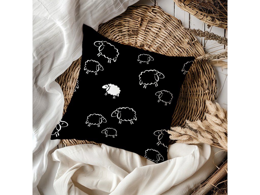 Obliečka na vankúšik 40x40cm 100% BAVLNA VZOR: baránky čierne