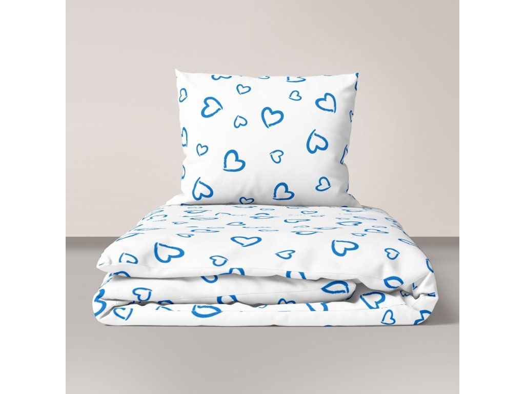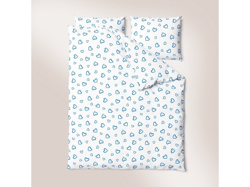 Bavlnená posteľná bielizeň 140x200cm s jednou obliečkou na vankúš 70x80cm, 100% bavlna, vzor: 264 - modré srdiečka na svetlom pozadíDodatočné parametre