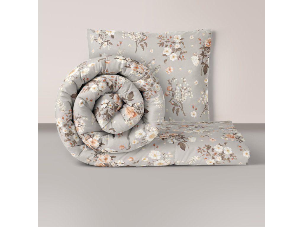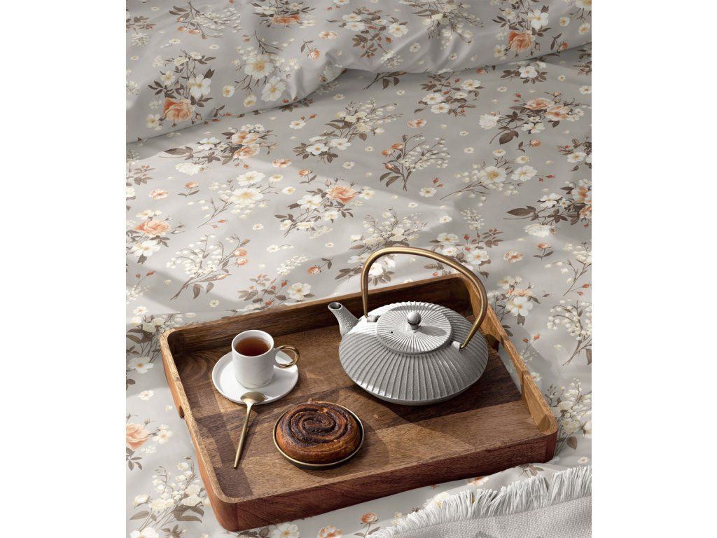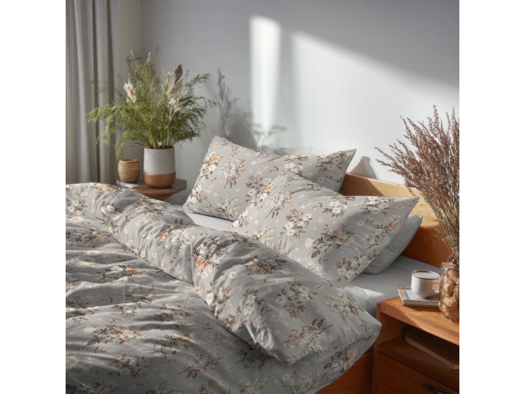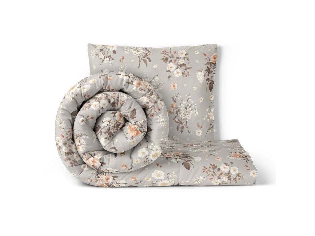 Obliečky 140x200cm, 70x80cm, 140g/m2, 100% bavlna Konvalinky sivobéžová