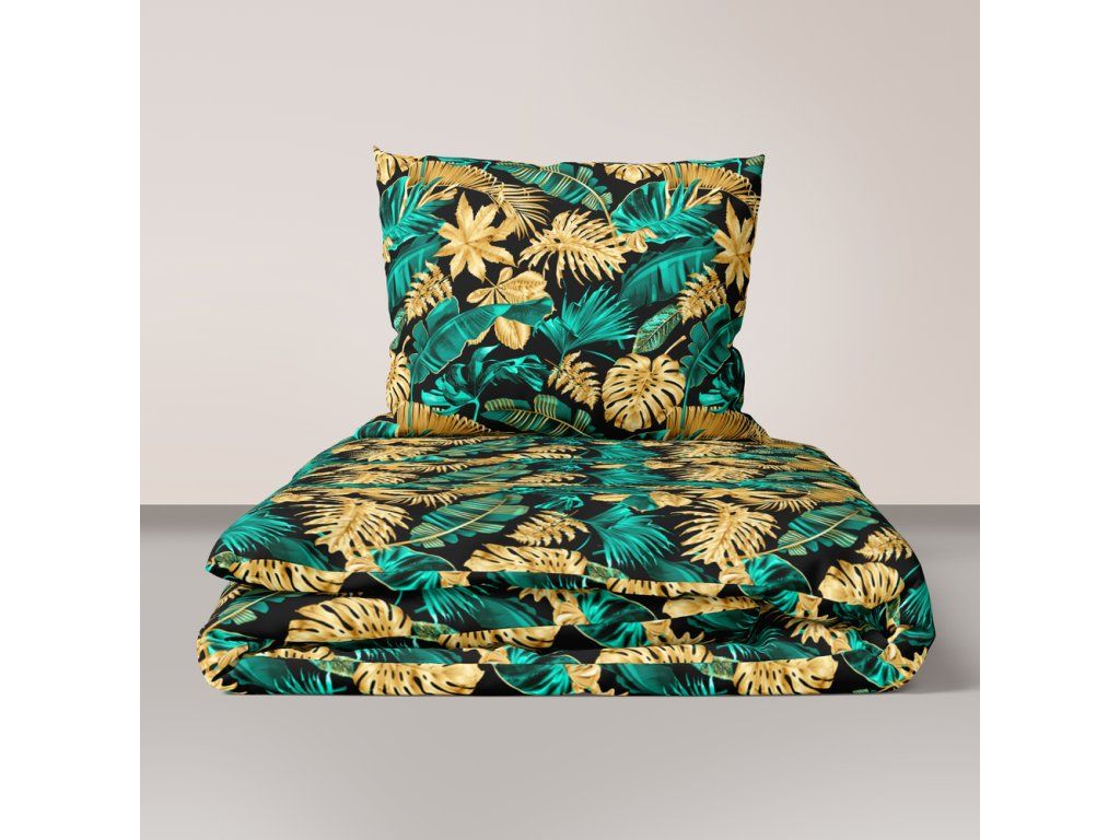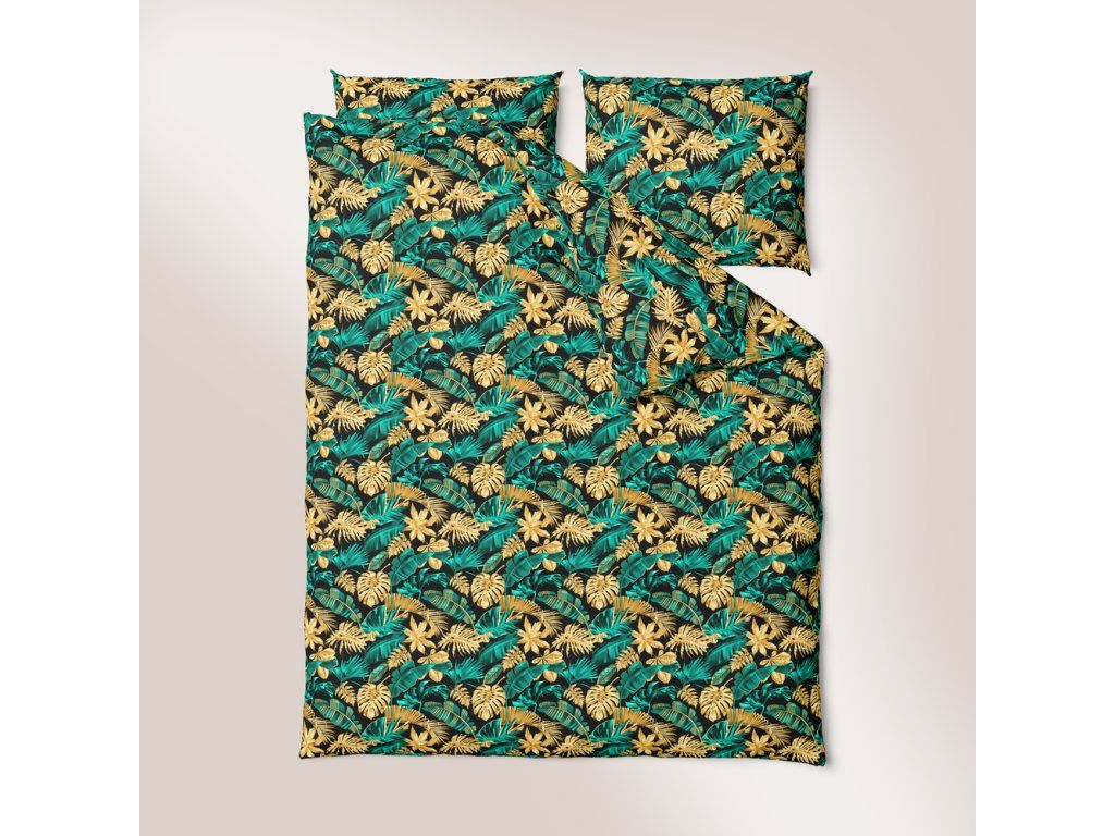 Bavlnené obliečky 140x200cm s jednou obliečkou na vankúš 70x80cm, 100% bavlna, vzor: Listy 3D tyrkys-zlatoDodatočné parametre