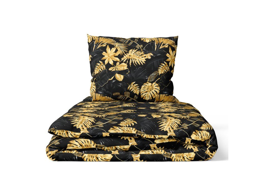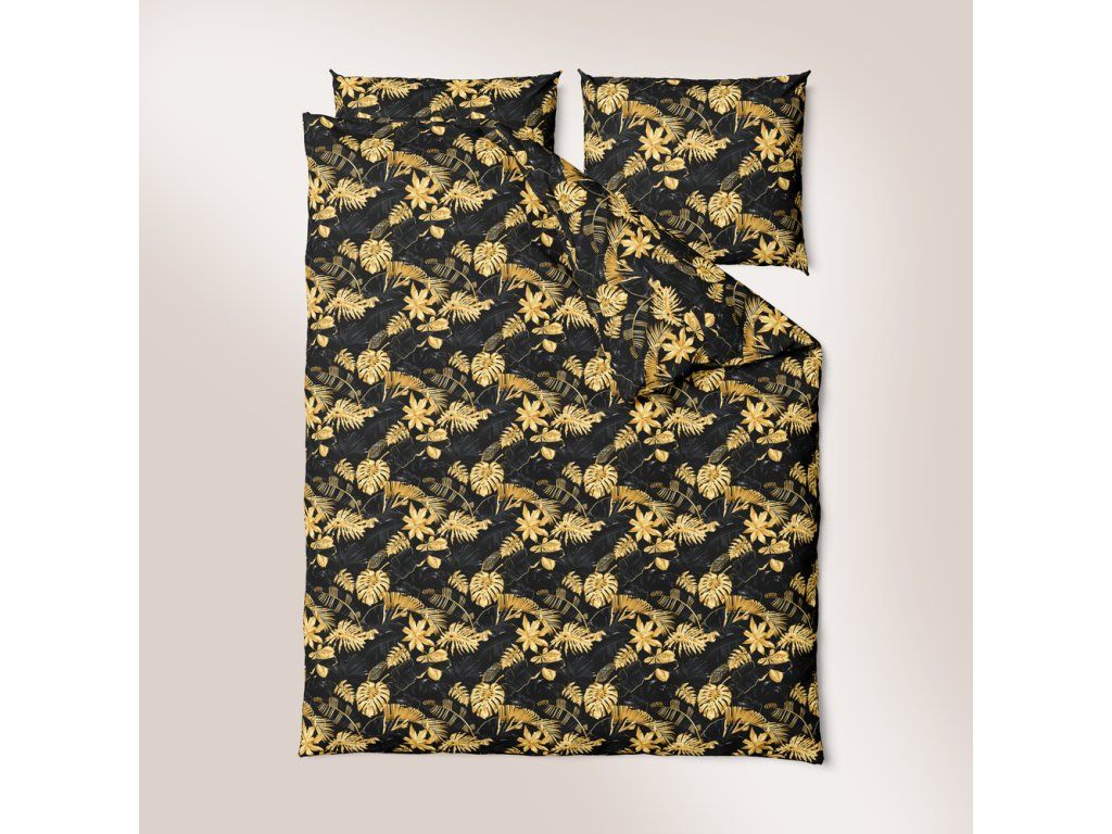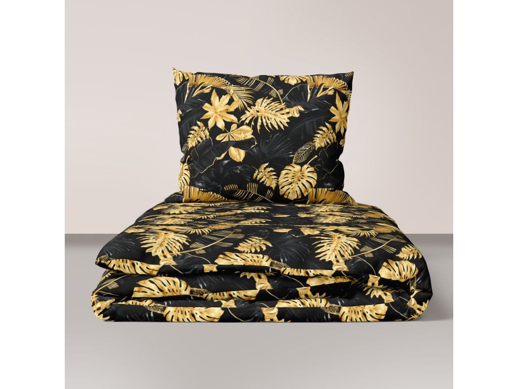 Bavlnené obliečky 140x200cm s jednou obliečkou na vankúš 70x80cm, 100% bavlna, vzor: Listy 3D zlato-čierneDodatočné parametre