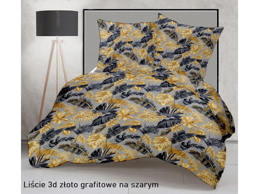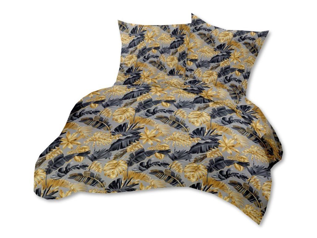 Obliečky 140x200cm, 70x80cm, 140g/m2, bavlna 100% : Listy 3D zlato grafitové na sivom