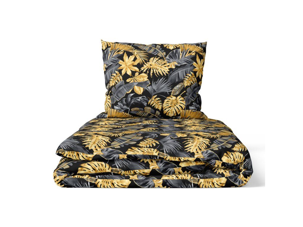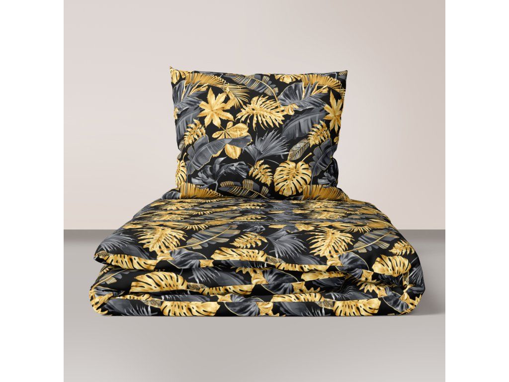 Obliečky 140x200cm, 70x80cm, 140g/m2, bavlna 100% : Listy 3D zlato sivé
