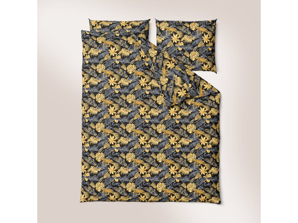 Bavlnené obliečky 140x200cm s jednou obliečkou na vankúš 70x80cm, 100% bavlna, vzor: Listy 3D zlato-sivéDodatočné parametre