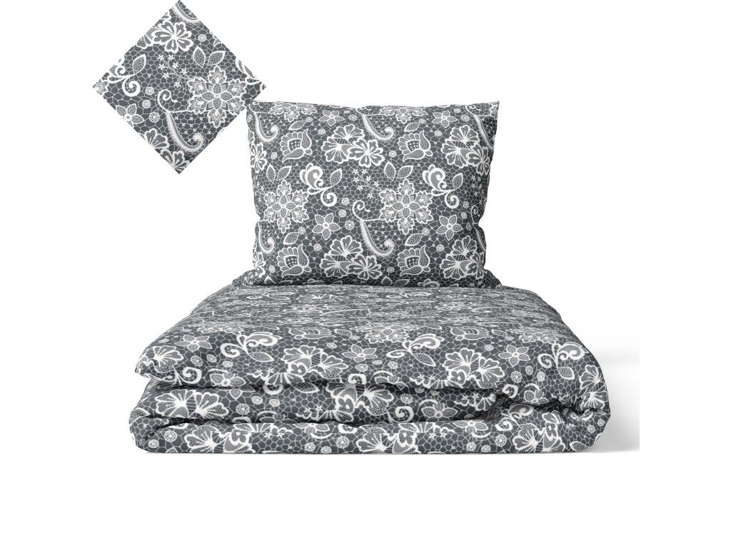Obliečky 140x200cm, 70x80cm, 140g/m2, bavlna 100% sivá čipka
