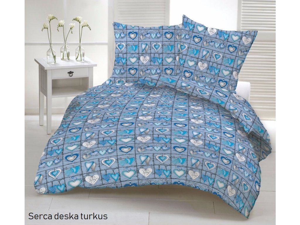 Obliečky 140x200cm, 70x80cm, 140g/m2, bavlna 100% : Srdcia doska tyrkys