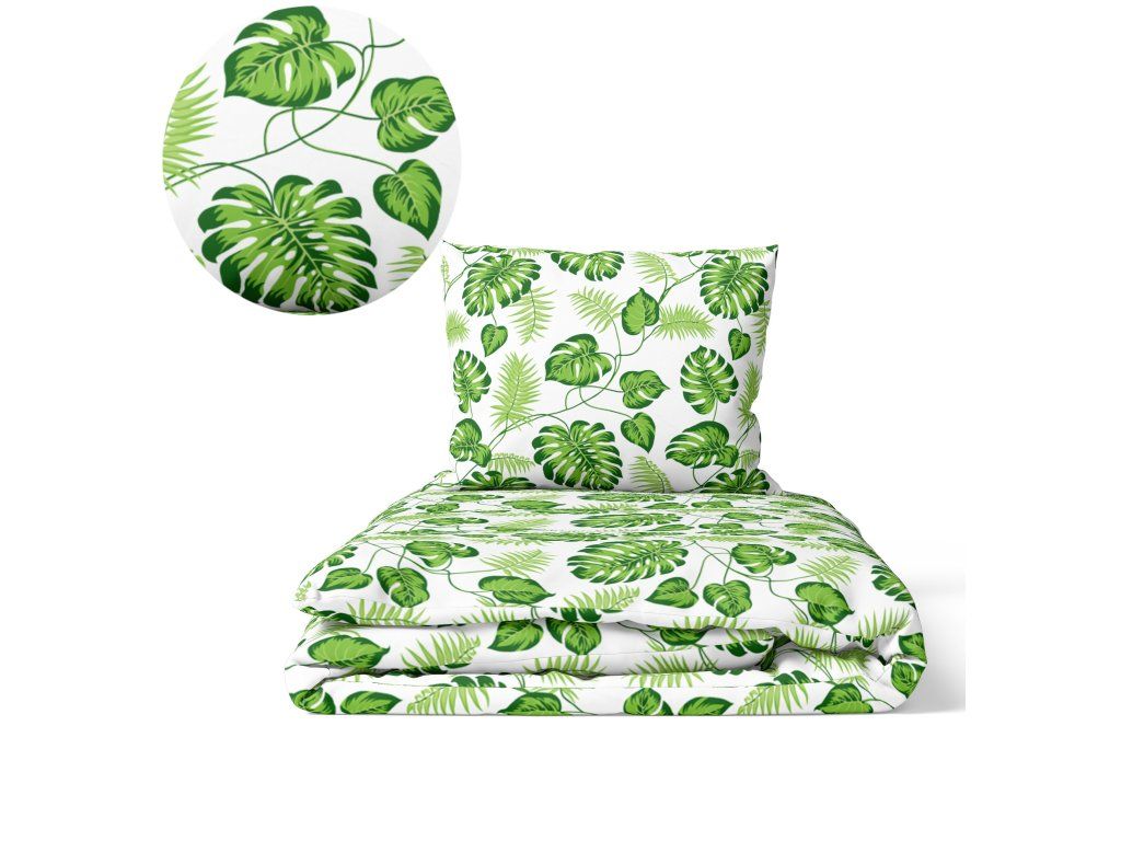 Bavlnené obliečky 140x200cm s jednou obliečkou na vankúš 70x80cm, 100% bavlna, vzor: zelené palmové listyDodatočné parametre