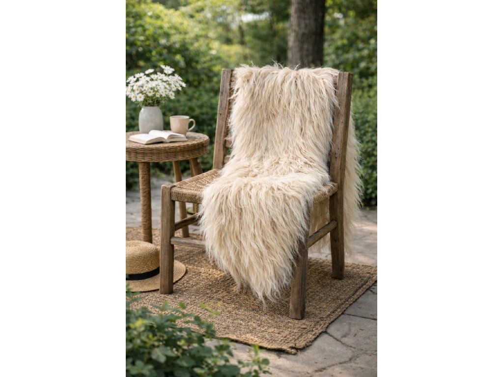 Béžová ovčia kožušina Island vnáša do priestoru teplo a prirodzenú eleganciu – skvele doplní rustikálne aj moderné interiéry.
