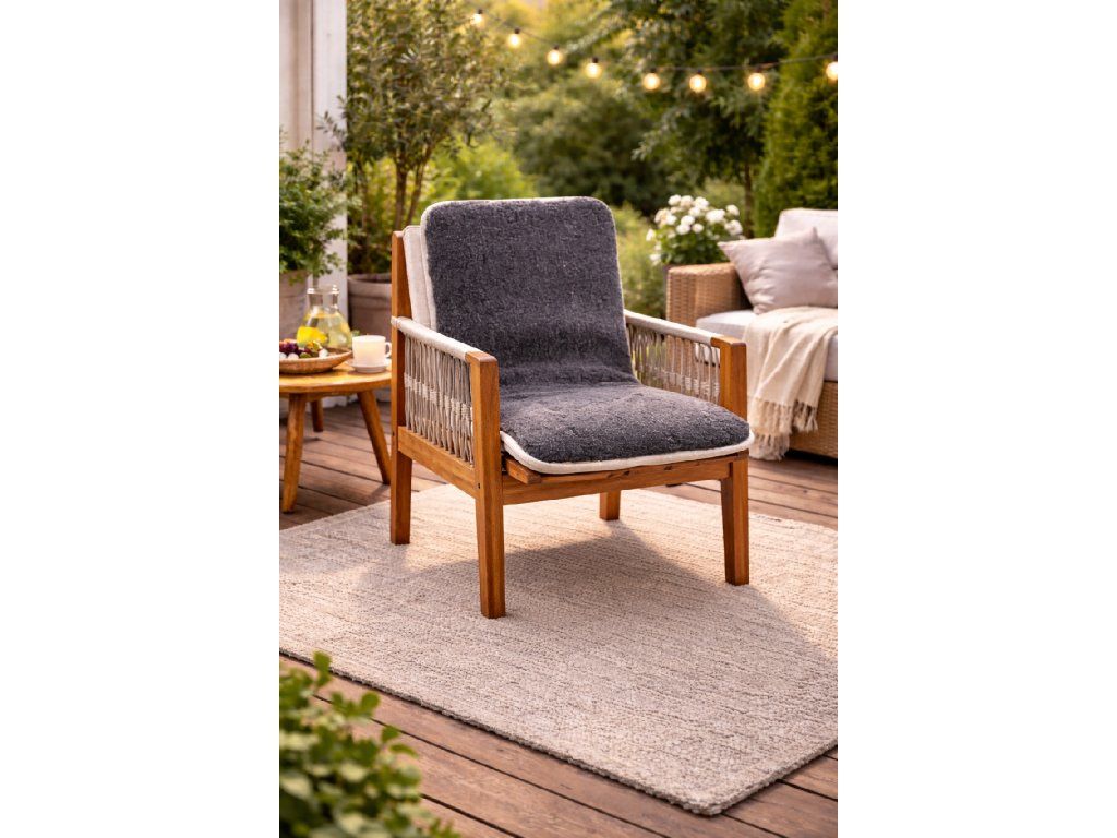 Tento prírodný podsedák je navrhnutý tak, aby prinášal teplo v chladných mesiacoch a zároveň zostával priedušný v teplejších obdobiach. Vďaka univerzálnemu dizajnu je vhodný na každodenné použitie – na stoličky, lavice, kreslá, na terasu či do auta.