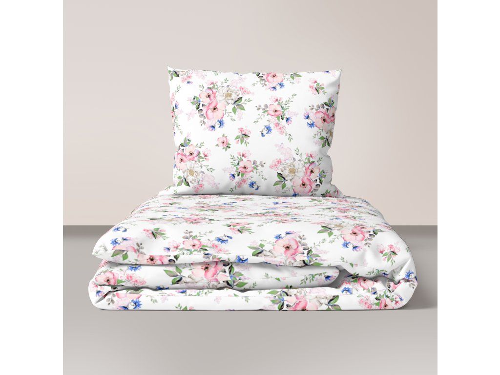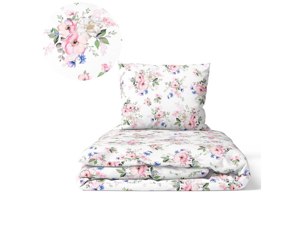 Bavlnená posteľná bielizeň 140x200cm s jednou obliečkou na vankúš 70x80cm, 100% bavlna, vzor: Biela jabloňDodatočné parametre