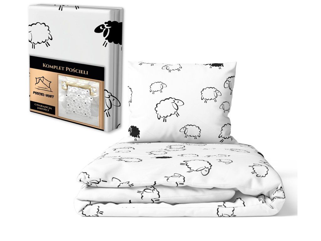 Bavlnená posteľná bielizeň 140x200cm s jednou obliečkou na vankúš 70x80cm, 100% bavlna, vzor: barančeky na bielom pozadíDodatočné parametre