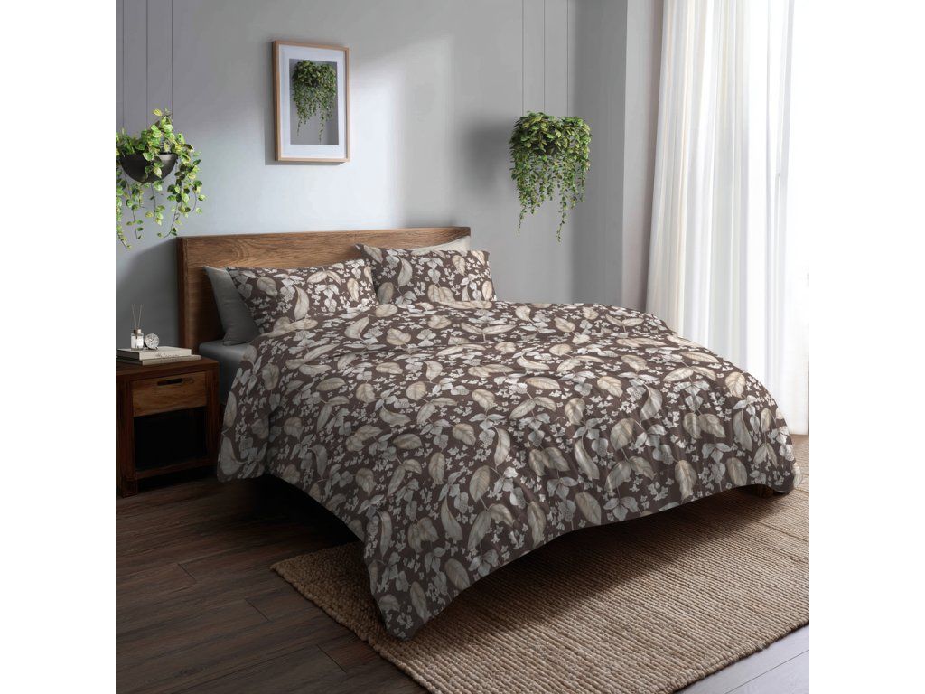 Posteľná bielizeň 140x200cm, 70x80cm, 140g/m2, 100% bavlna Kvet púšte na hnedej