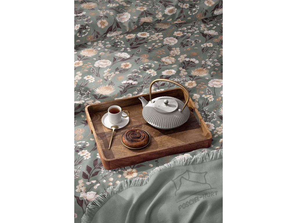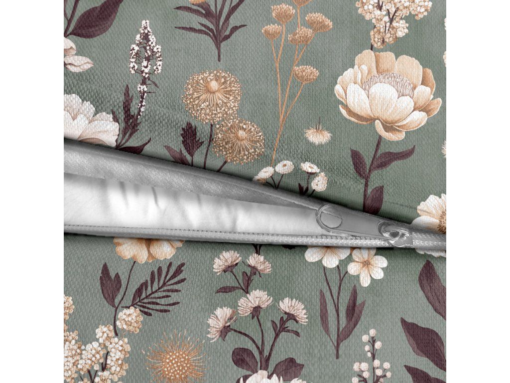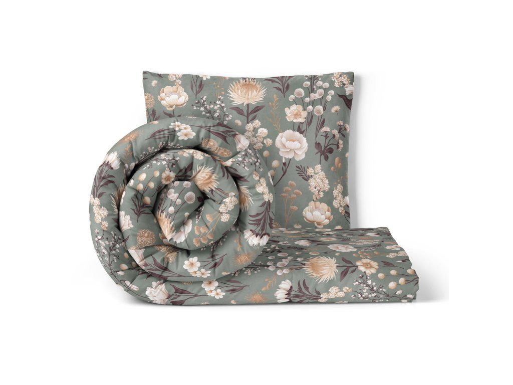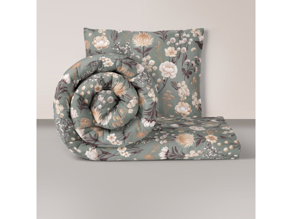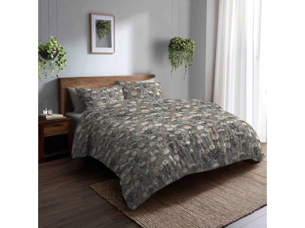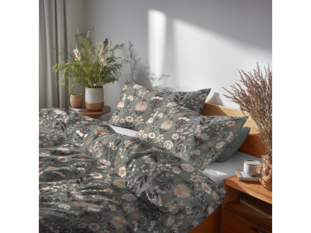 Posteľná bielizeň 140x200cm, 70x80cm, 140g/m2, 100% bavlna Kvetinová záhrada na zelenej