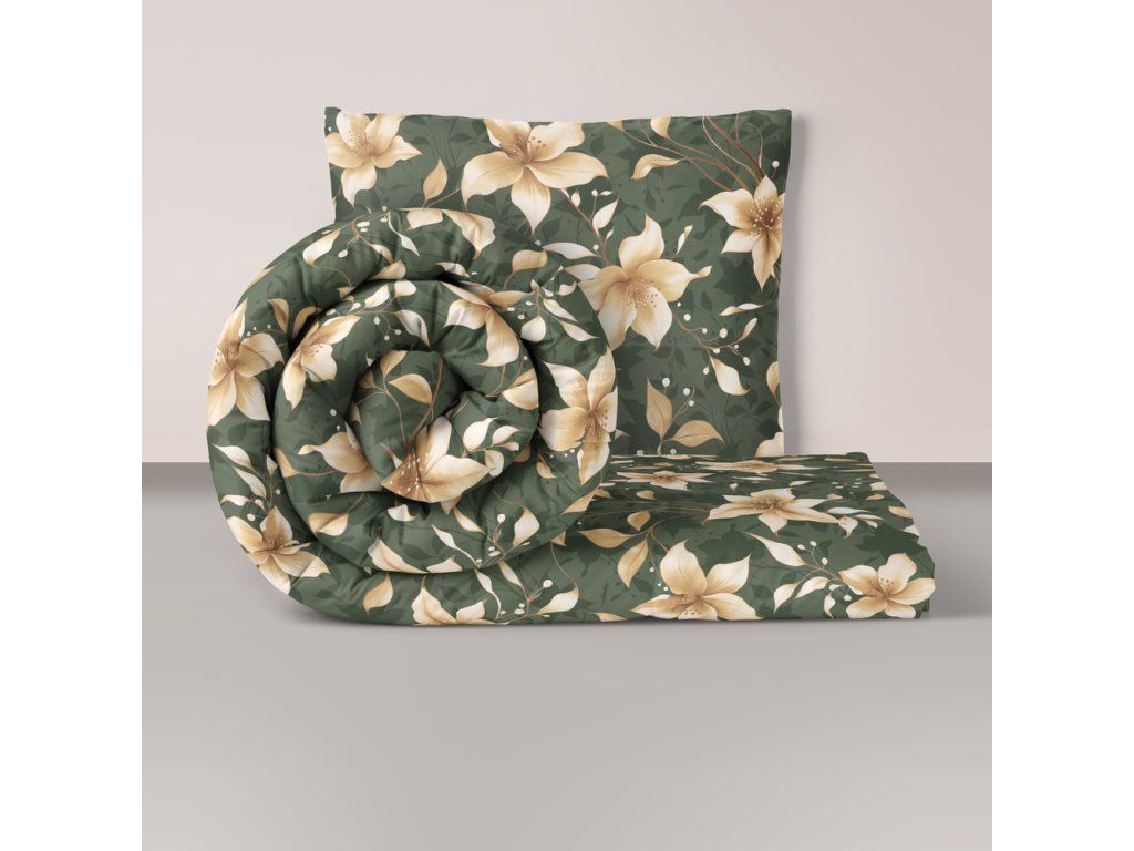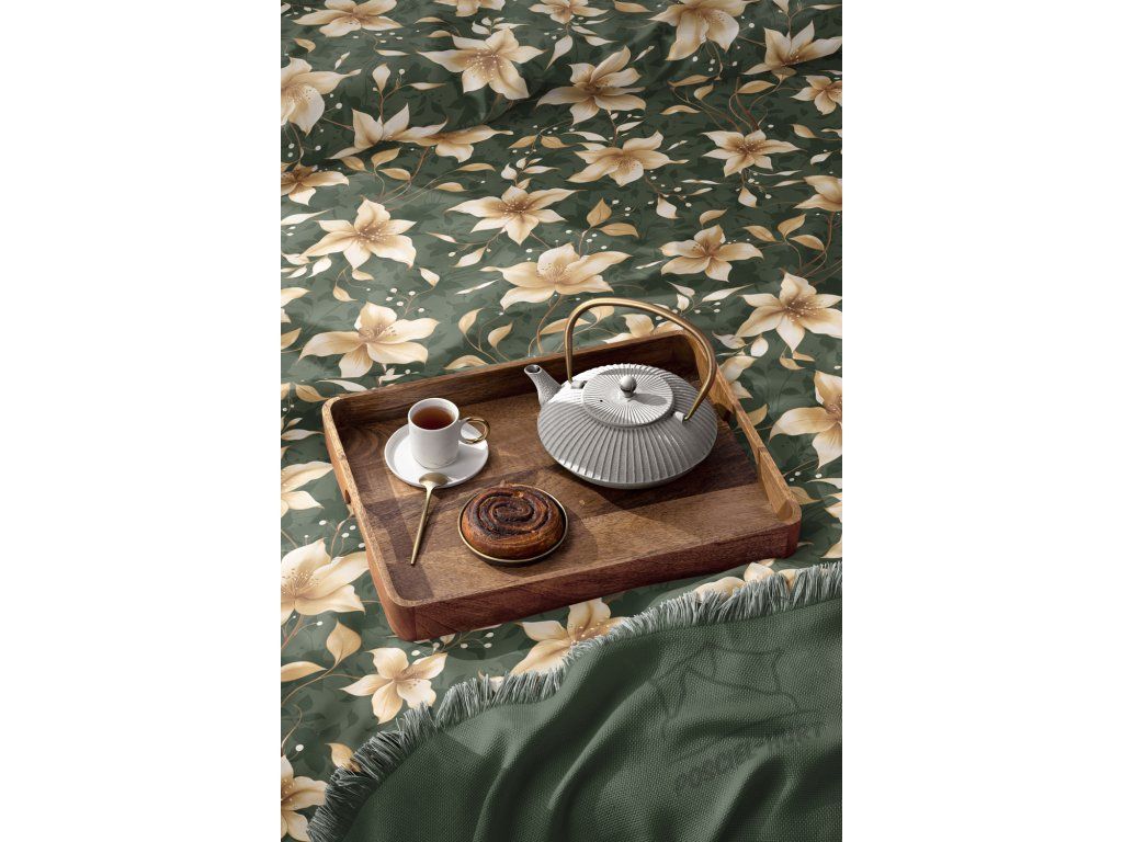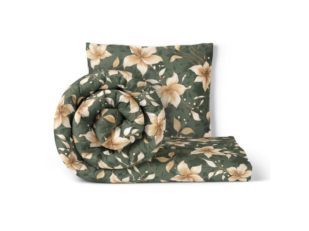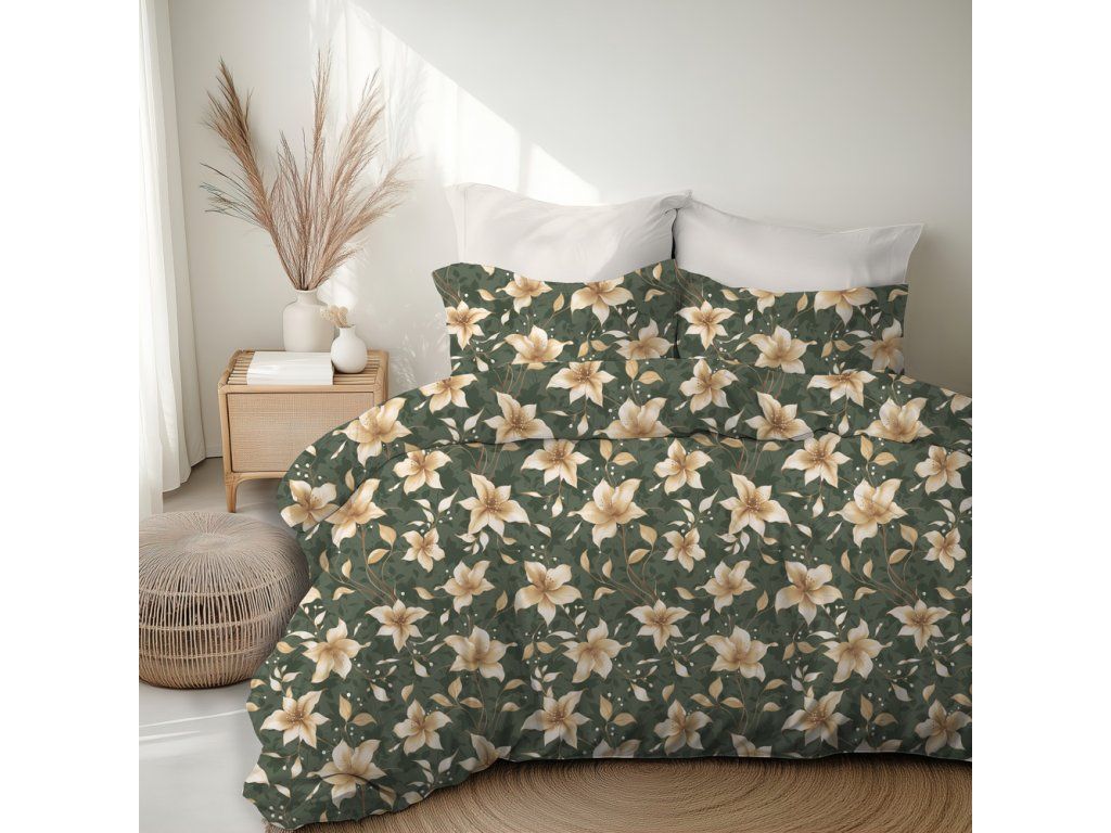 Posteľná bielizeň 140x200cm, 70x80cm, 140g/m2, 100% bavlna Perlová vanilka na zelenej