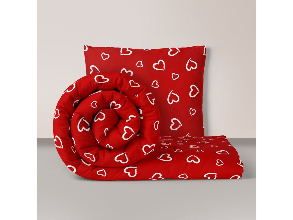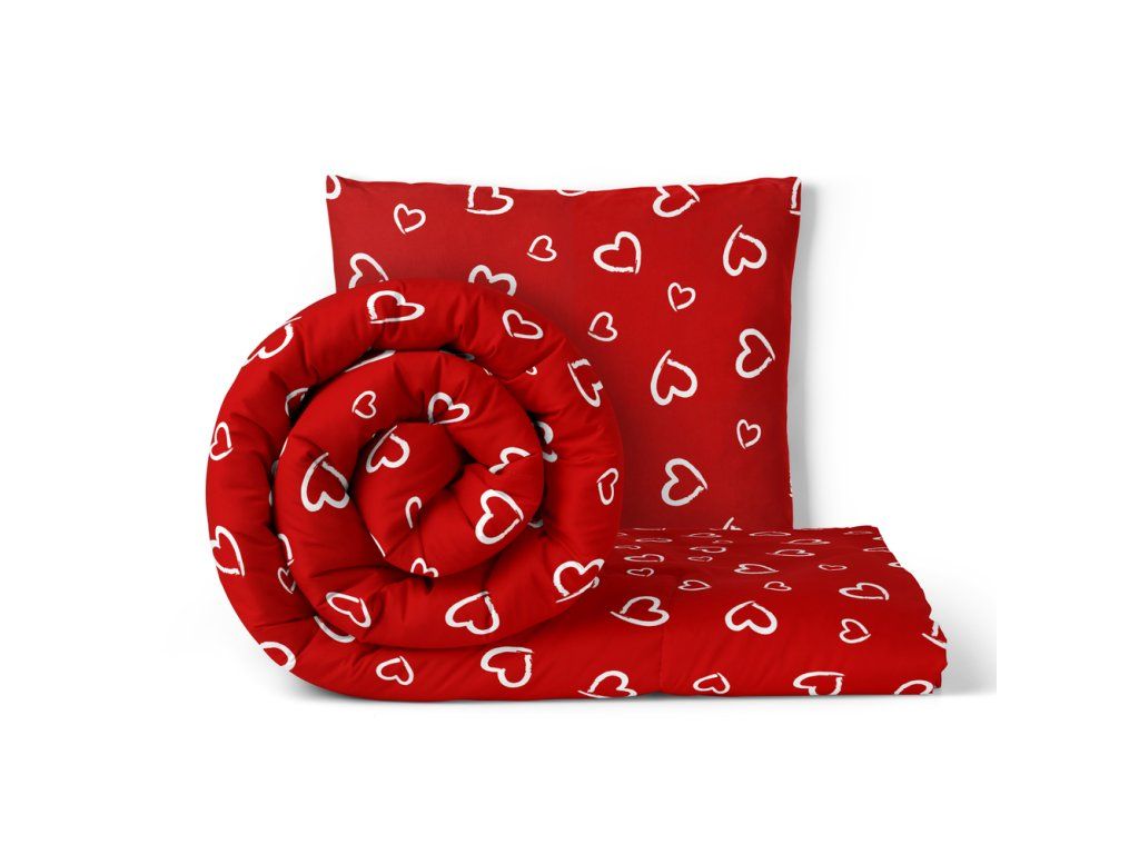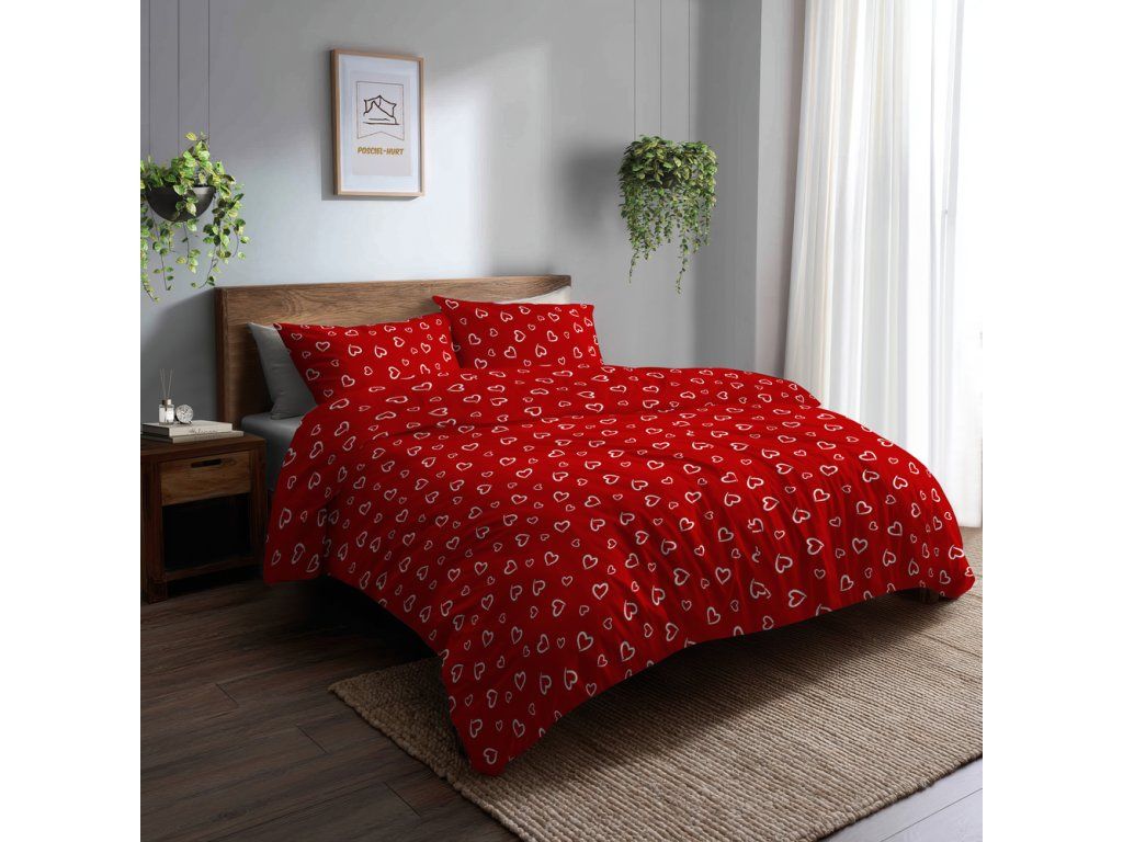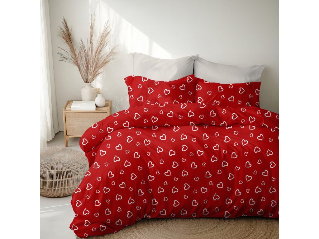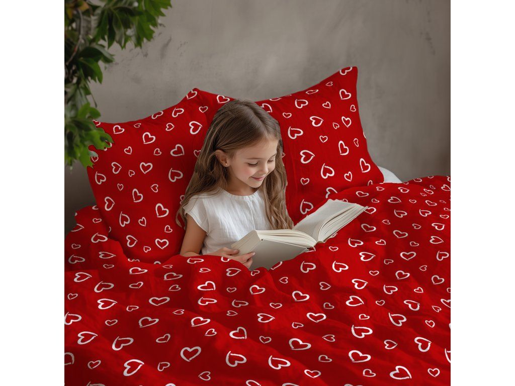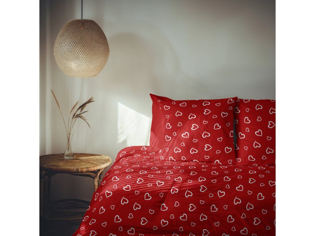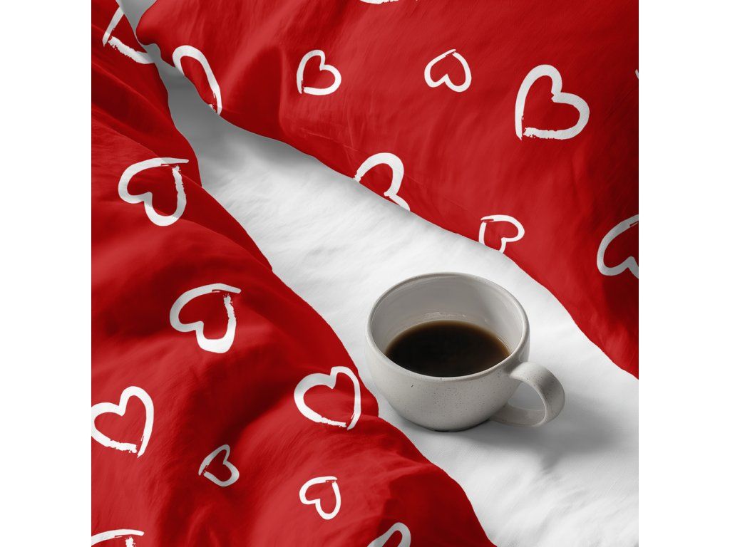 Posteľná bielizeň 140x200cm, 70x80cm, 140g/m2, bavlna 100% Biele srdcia s obrysom na červenom