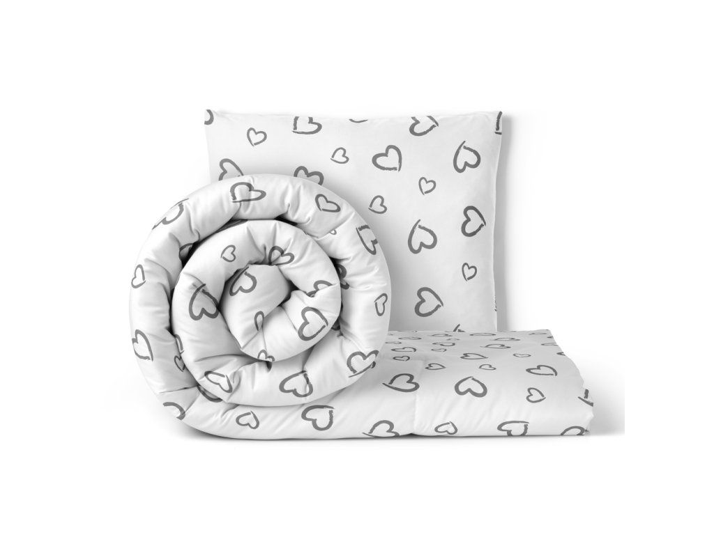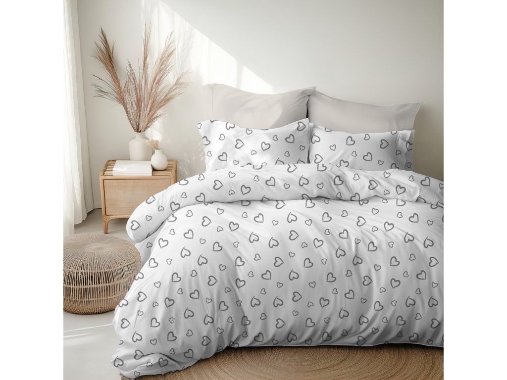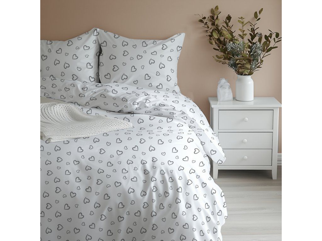Posteľná bielizeň 140x200cm, 70x80cm, 140g/m2, bavlna 100% Sivé srdcia s obrysom na bielom