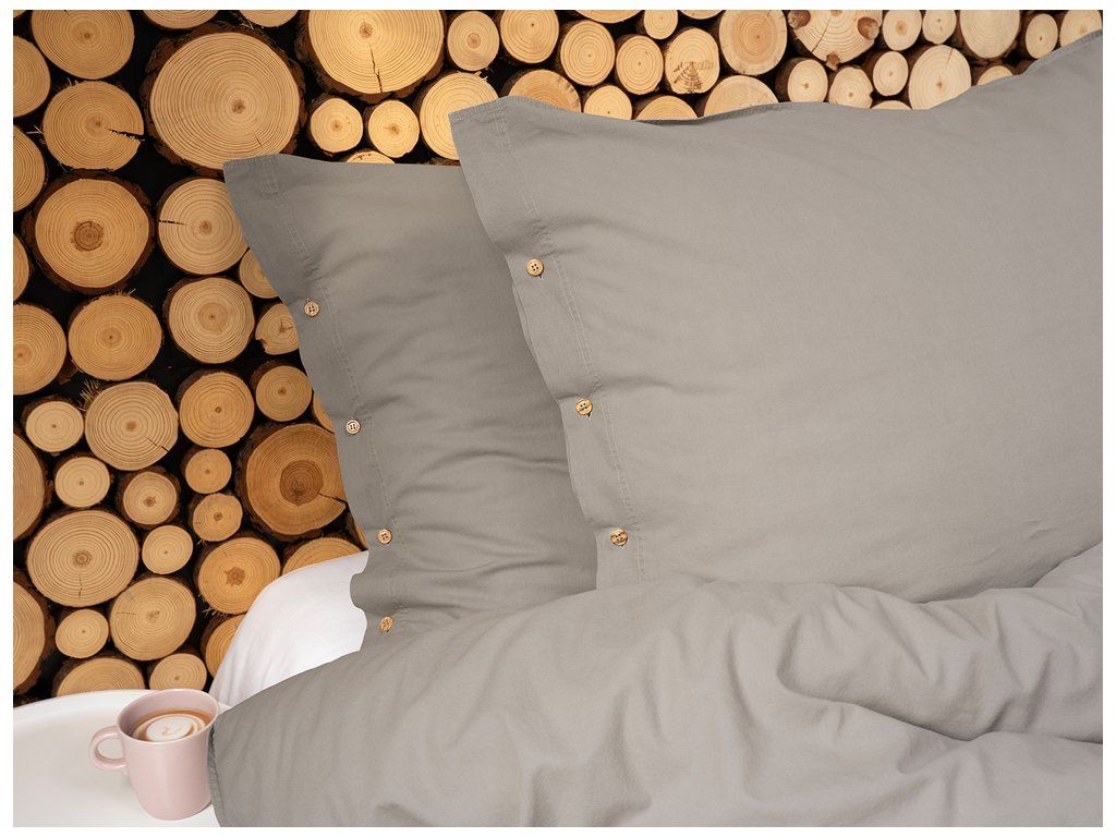 Posteľná bielizeň 140x200cm 100% BAVLNA PURE ECO LINE ozdobný gombík Teplá sivá