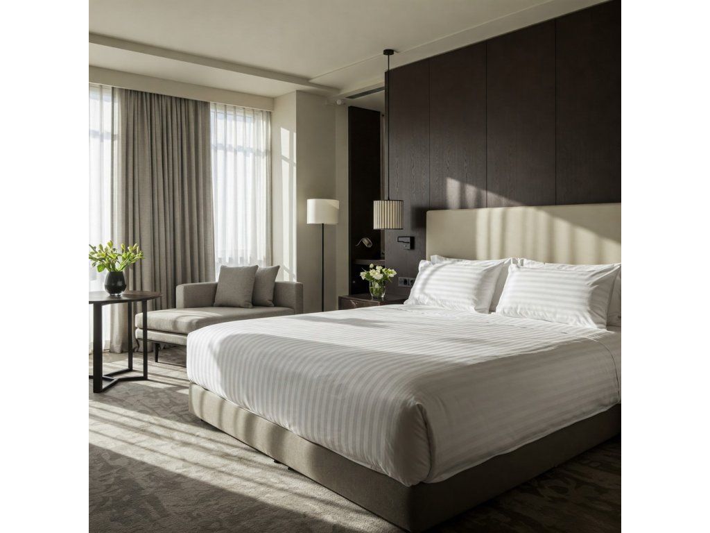 Objavte tajomstvo hotelovej elegancie a neprekonateľného pohodlia s našou posteľnou bielizňou Damašek – mikrovlákno. Vyrobená z najkvalitnejšieho mikrovlákna s gramážou 130g/m2, táto snehobiela posteľná bielizeň je zdobená jemným tkaným vzorom delikátnych jednocentimetrových pruhov, ktorý dodáva každej spálni rafinovaný charakter.