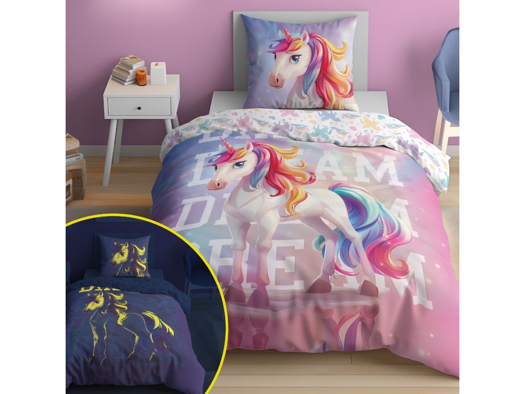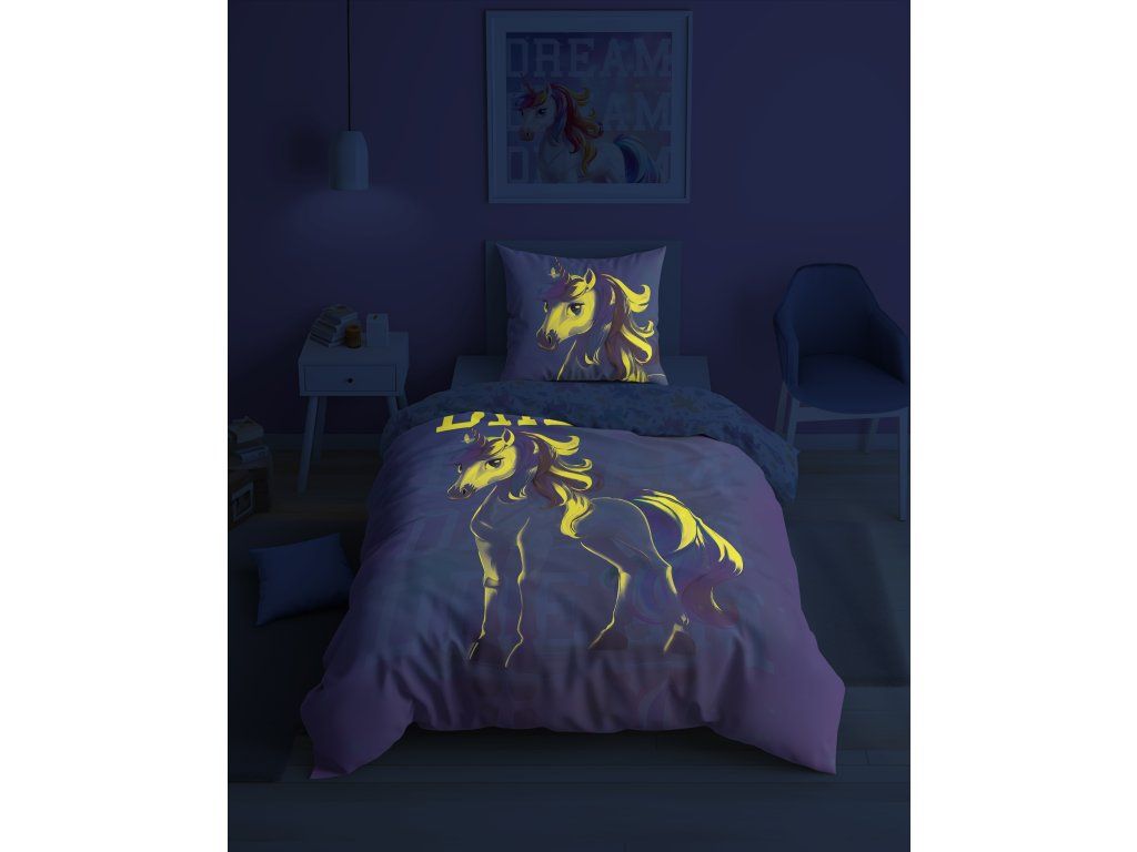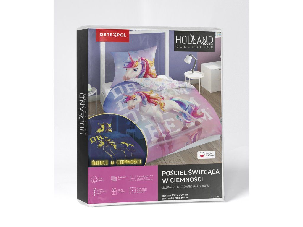 Obliečky svietiace v tme značky Holland Young Collection boli vytvorené s ohľadom na mladších zákazníkov. Mládežnícke motívy, intenzívne farby a efekt svietenia v tme zatraktívnia vzhľad izby dieťaťa alebo tínedžera.