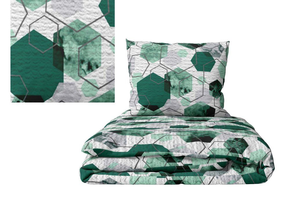 Súprava posteľnej bielizne z krepu 220x200 cm – Vzor: zelené geometrické šesťuholníky na bielom pozadí