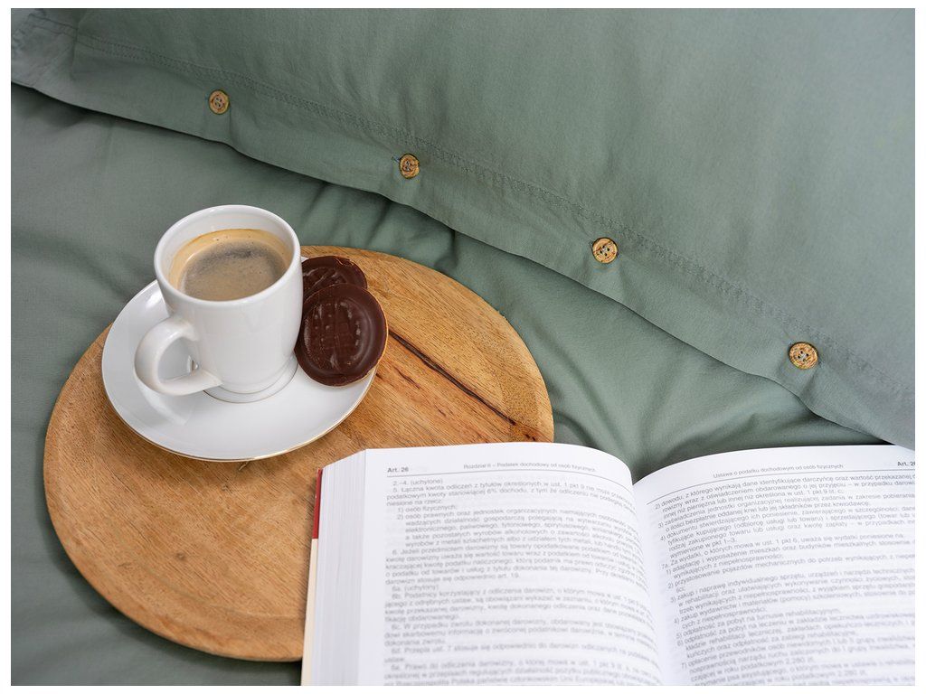 Minimalistický dizajn je doplnený jemnými detailmi – ozdobnými gombíkmi a elegantnou nášivkou, ktoré dodávajú posteľnej bielizni jedinečný charakter a podčiarkujú jej moderný štýl.